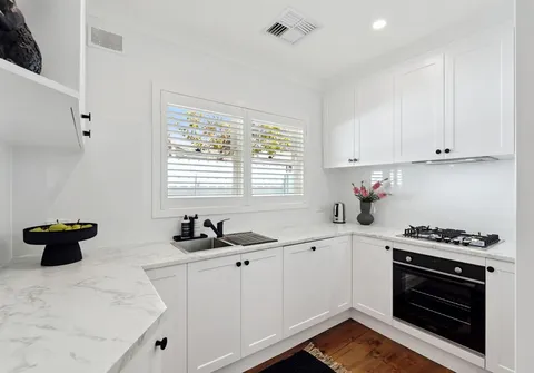 - Updated, modern kitchen with new gas cooktop and electric oven, integrated dishwasher and fridge, ample bench and cupboard space and window looking out to the rear courtyard