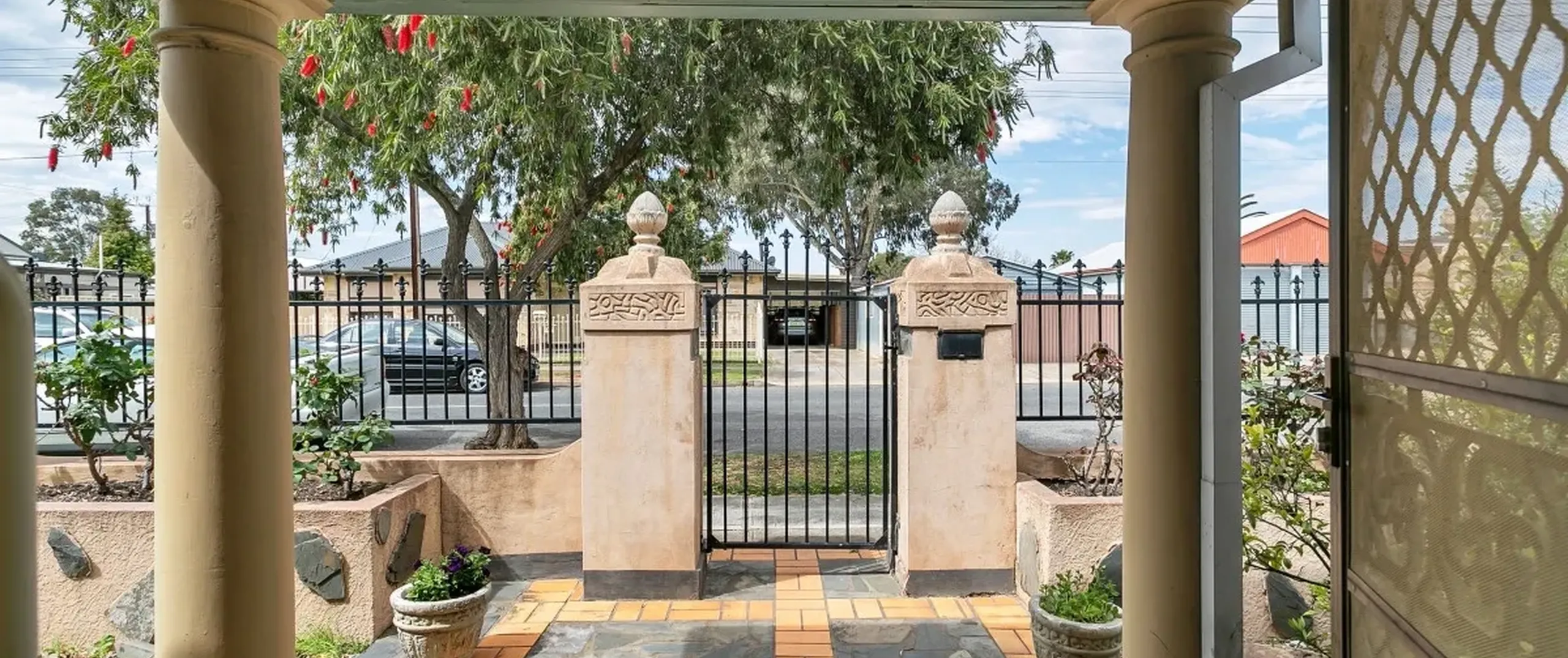 - Wide driveway with ample space for off-street parking for multiple vehicles and gates for security