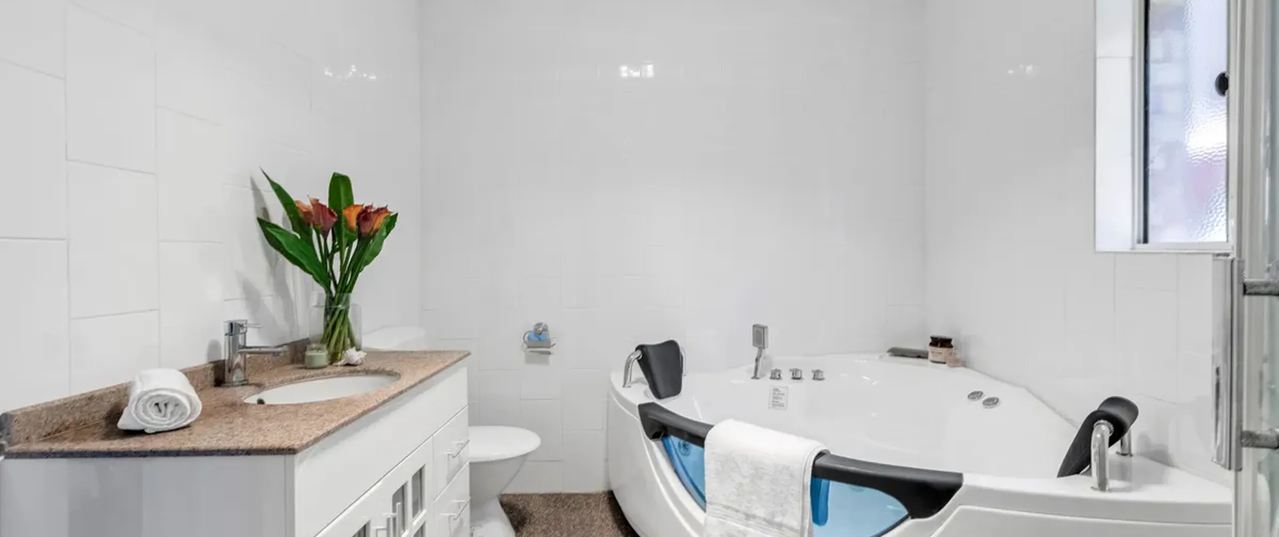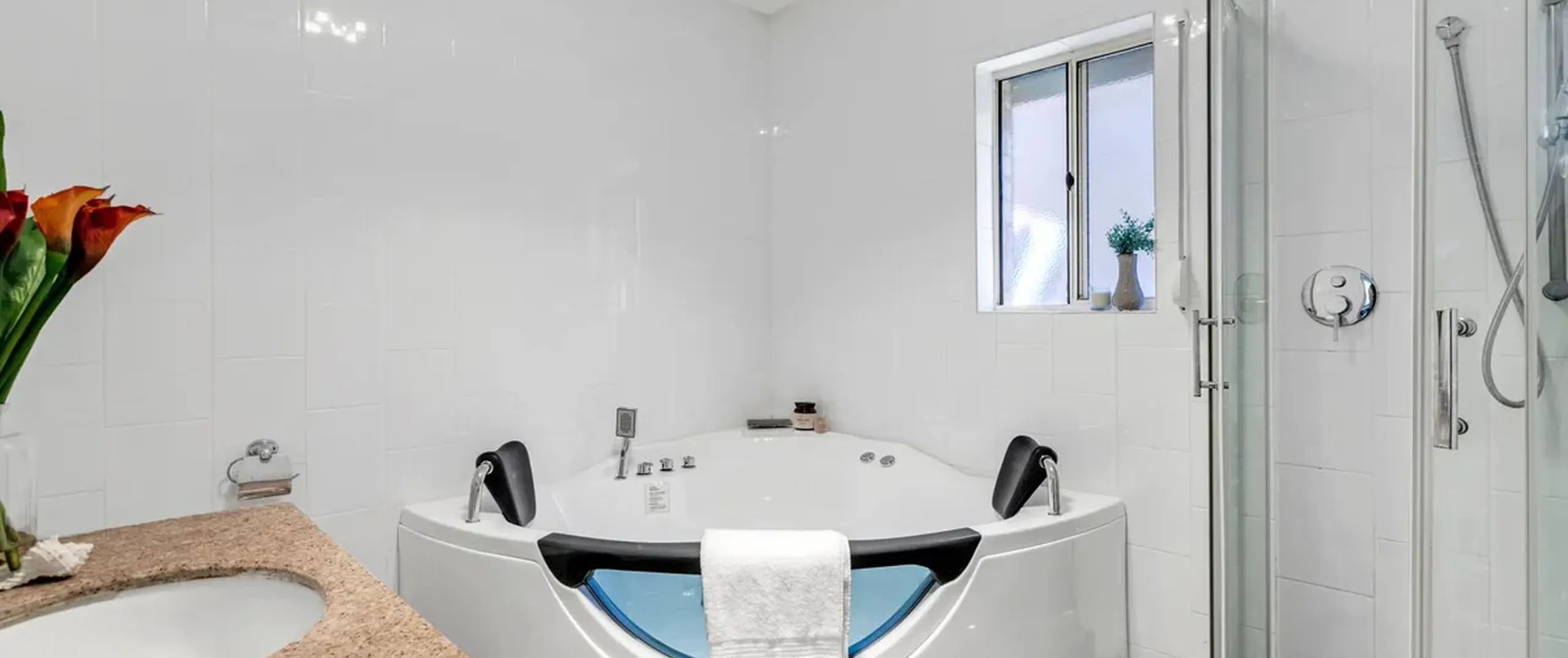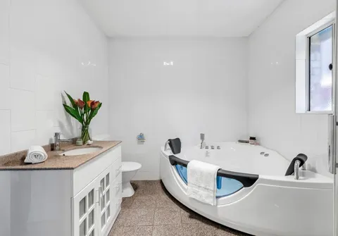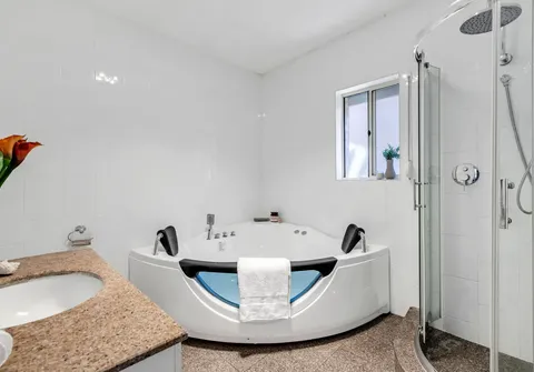 - Two-way ensuite complete with large spa bath, granite tiles and granite top basic, separate shower and floor to ceiling tiles