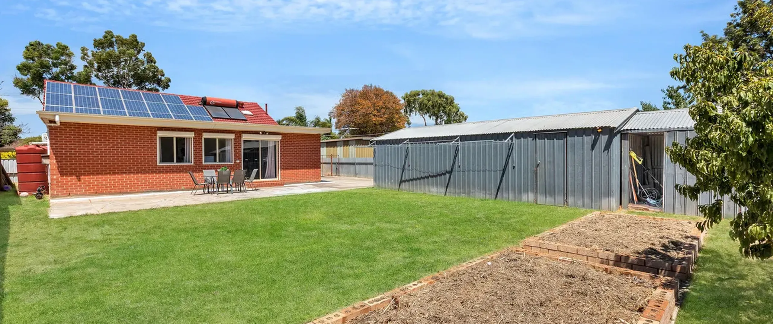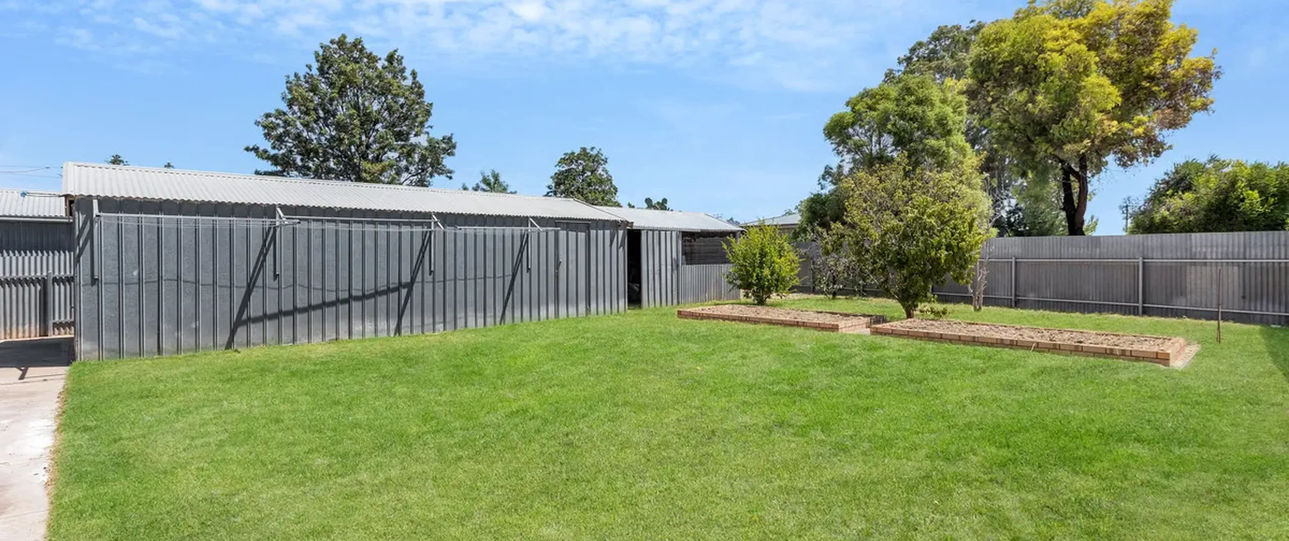 - Fully fenced, low maintenance yard with multiple fruit trees including Indian Tulsi (basil), Indian guava, curry leaves, citrus trees, plum, peach tree, 2 generous vegetable patches, automatic irrigation, large garage with panel lift door and additional shed
