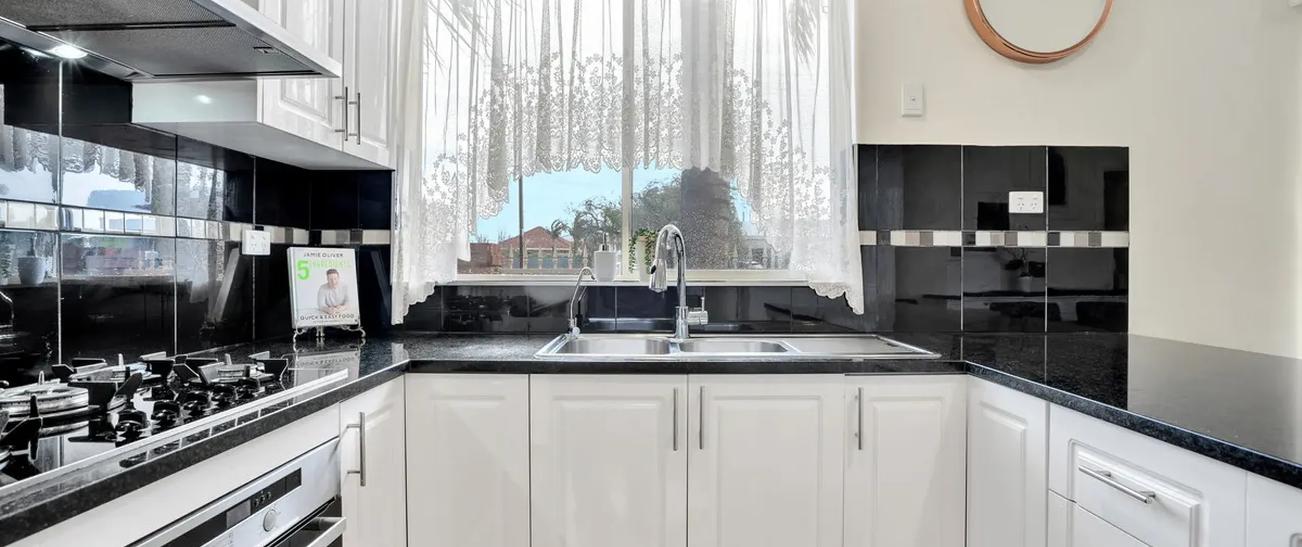 - Modern, stylish kitchen featuring granite benchtops, quality appliances plus ample bench and cupboard space