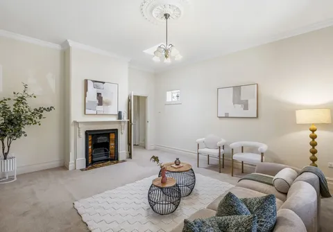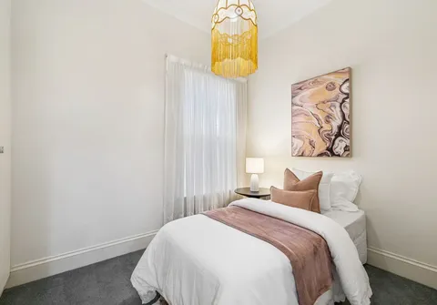 Currently configured as two charming residences, the homes provide scope to retain as one grand character estate, convert to separate titles, or live in one and rent, renovate or sell the other, the choice is entirely yours (subject to council consents). Behind the elegant sandstone façade, both dwellings showcase high 3m ceilings (approximate), solid construction and generous proportions that lend themselves to modern transformation while maintaining their period allure.