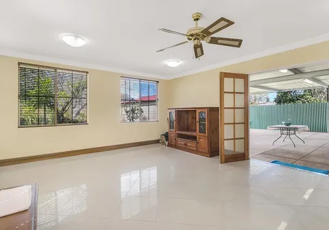 - Large family/rumpus room with split system air conditioner and ceiling fan