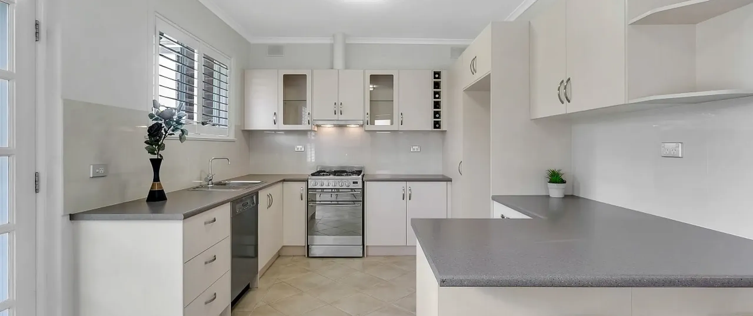 - Modern and stylishly updated kitchen with gas cooktop, dishwasher, ample bench and cupboard space and breakfast bar
