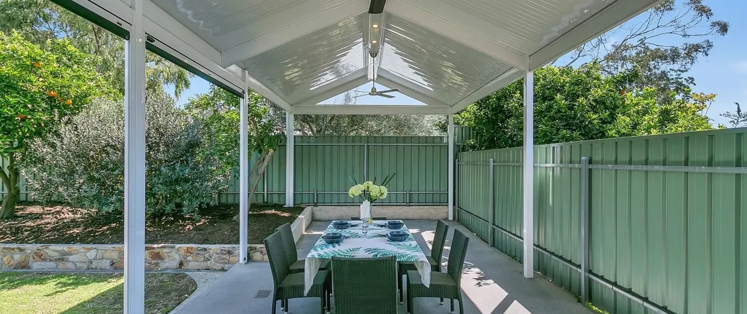 - Brand new outdoor undercover zone with ceiling fans, lights and blinds, perfect for outdoor entertaining