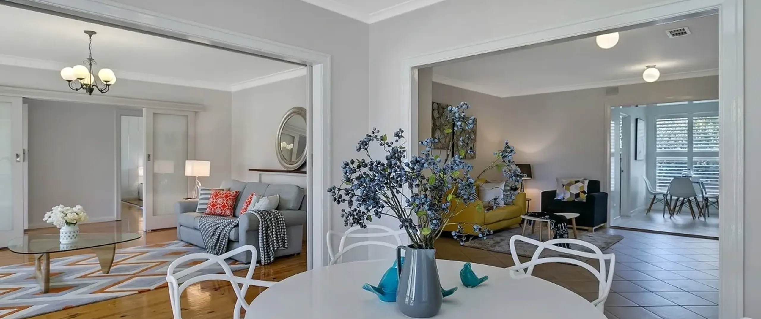 - Large open plan family room with adjacent formal dining area