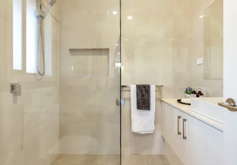 - Large master bedroom with walk-in robe and ensuite with full height tiling, caesar benchtop and two shower heads