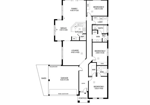- Double garage under main roof with panel glide door, internal access and drive through access