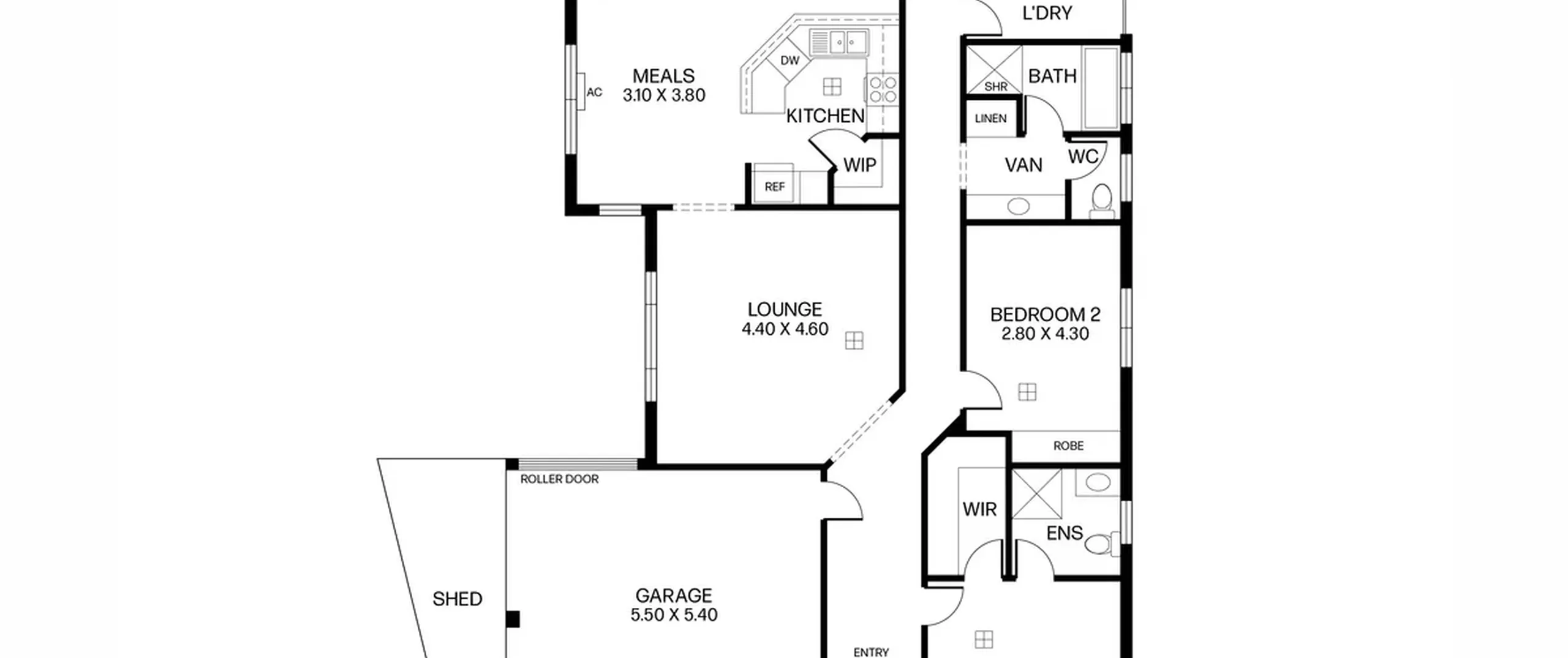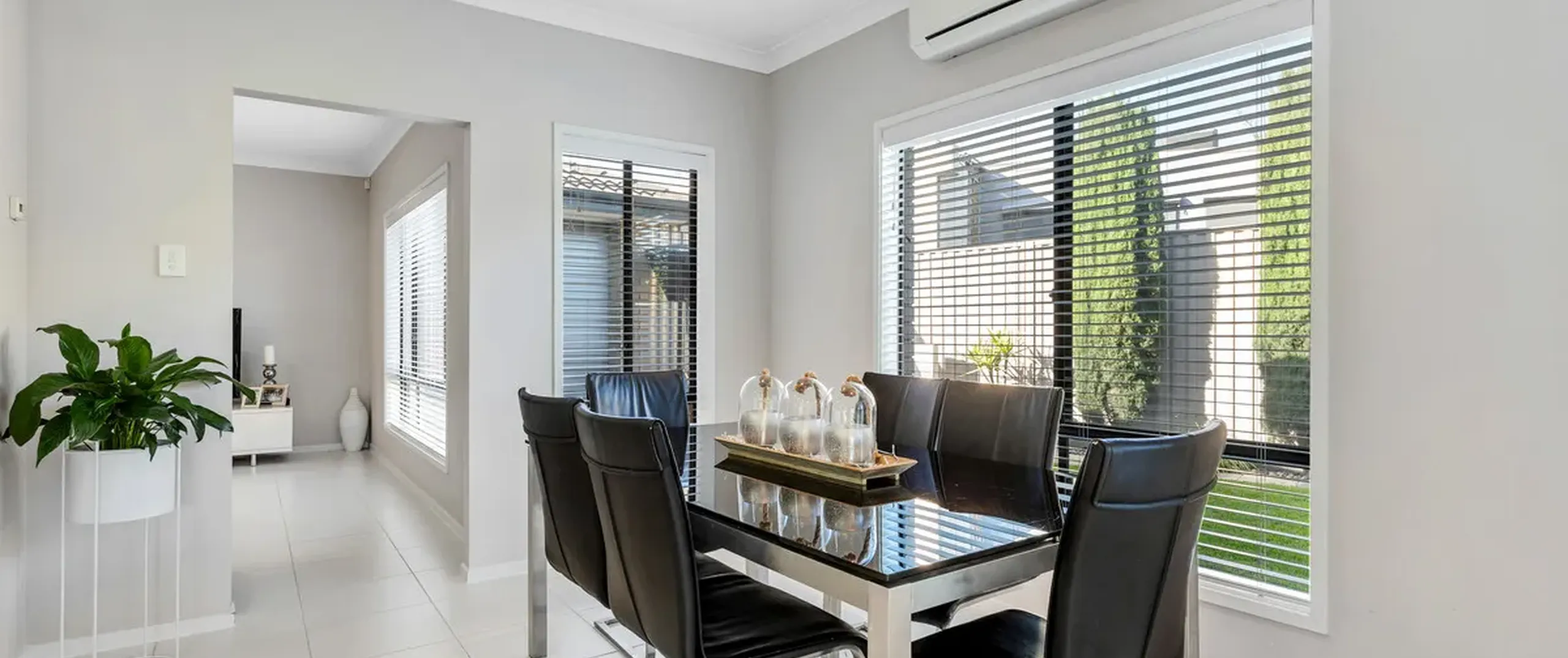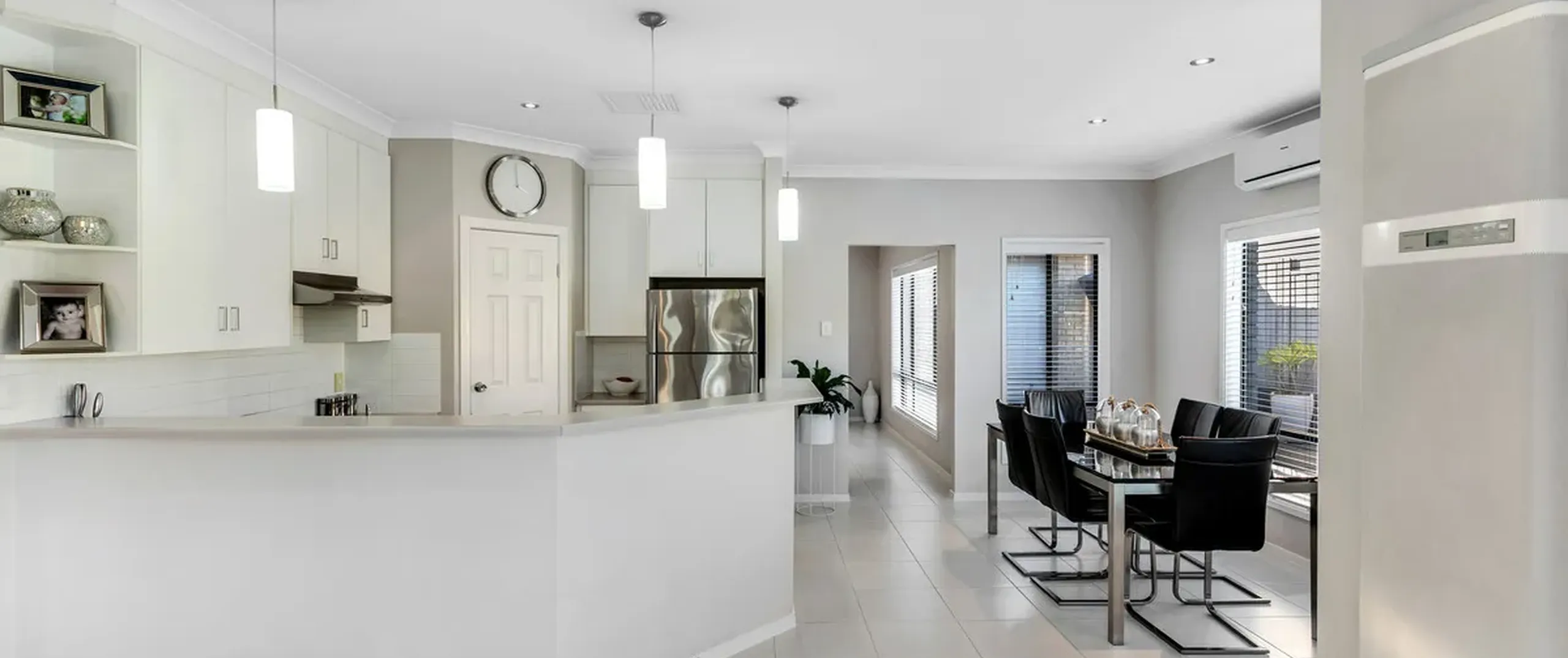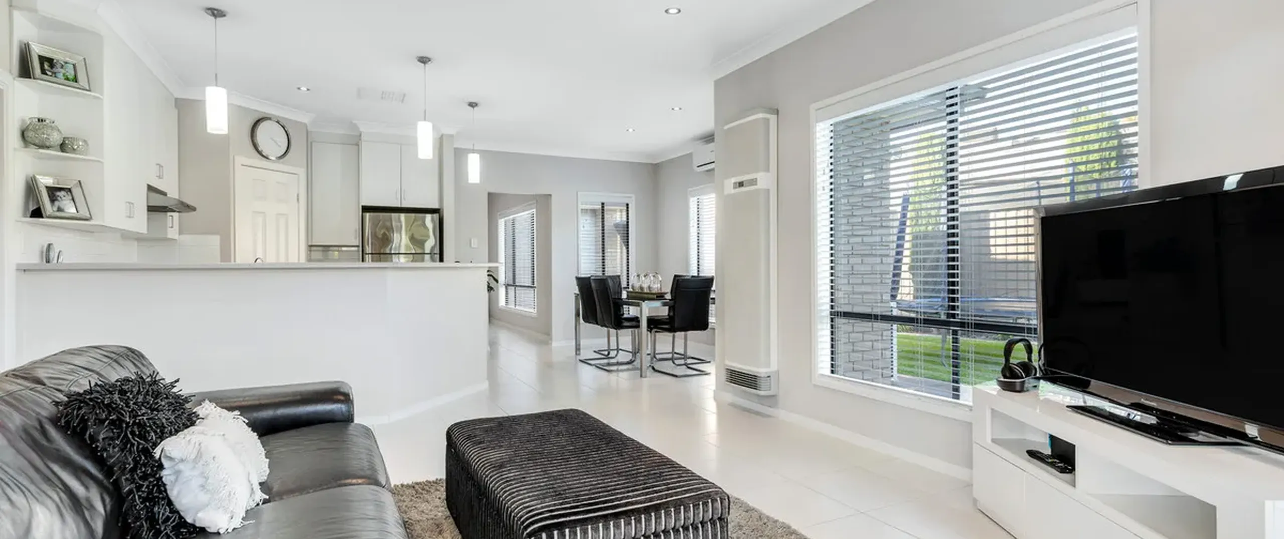 - Open plan living/kitchen and meals area with split system air conditioner and gas heater