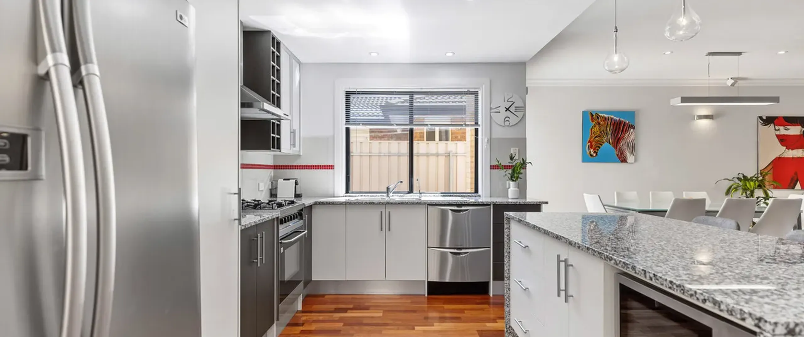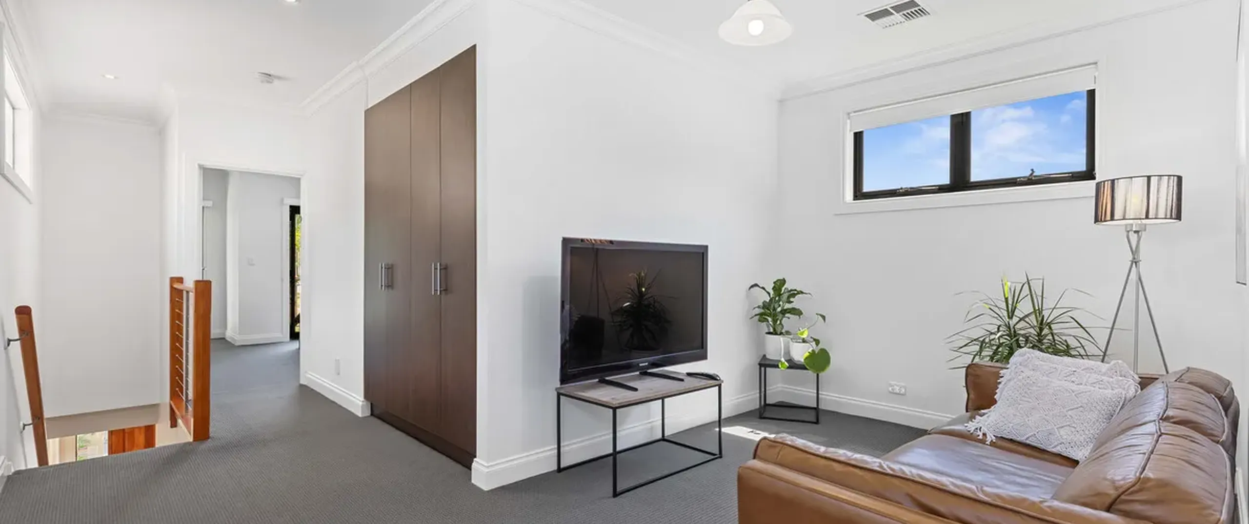 The floor plan is spread across two generous levels, with the lower level comprising the laundry, kitchen and spacious open plan dining and living area. Imagine cooking up a storm in the sleek kitchen with quality appliances, gas cooking, wine storage and island bench. Upstairs there are three spacious bedrooms, main bathroom and retreat where you can escape with a good book and cup of tea.