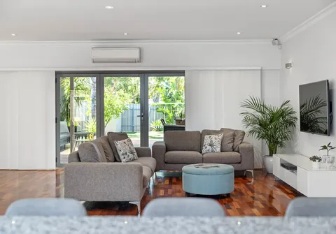 - Beautiful light filled open plan living, dining and kitchen with gas fireplace and split system air conditioning for year round comfort
