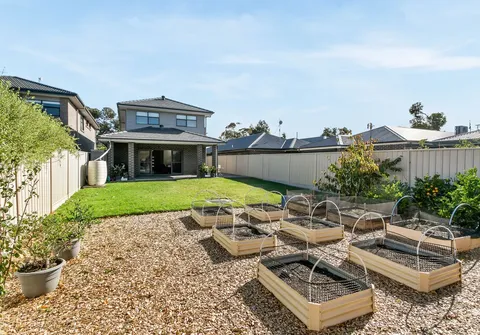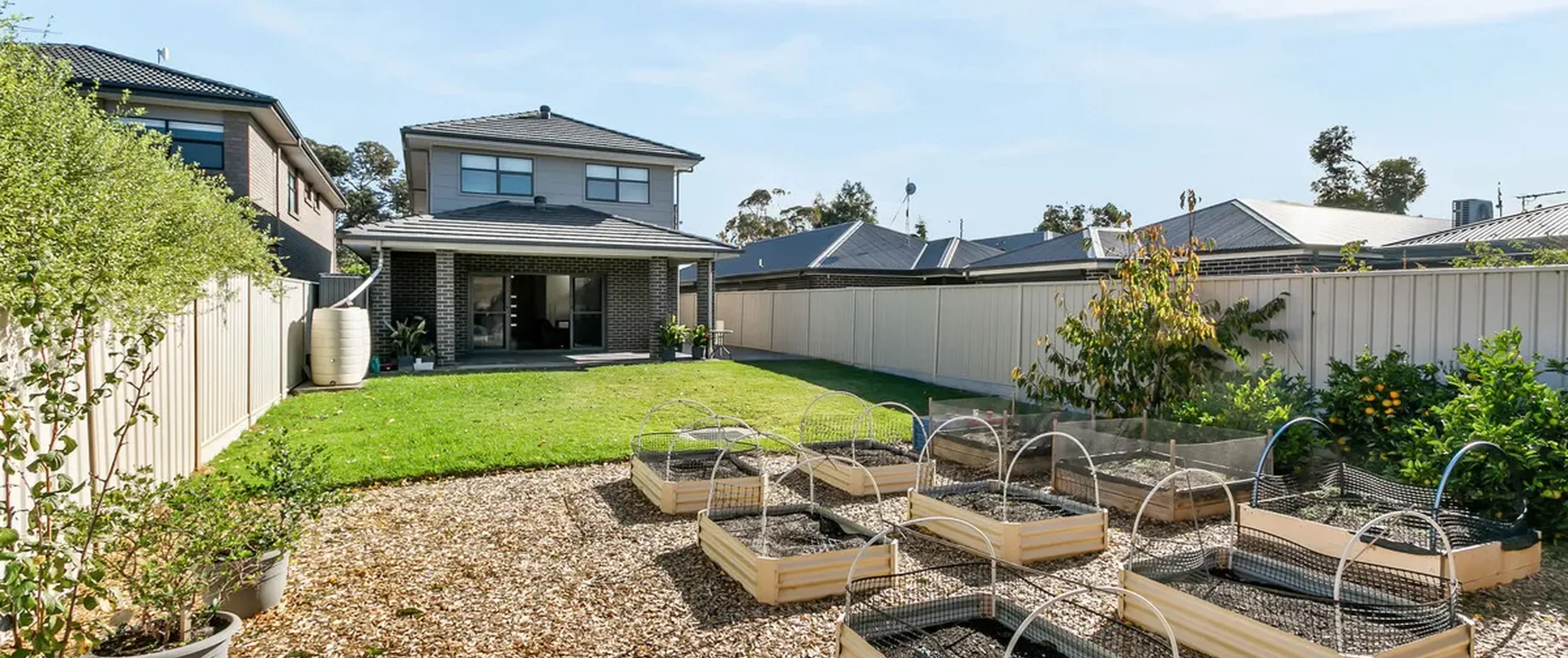 - Large rear yard with vegetable garden featuring apple, plum, lemon, lime, mandarin and cherry plants
