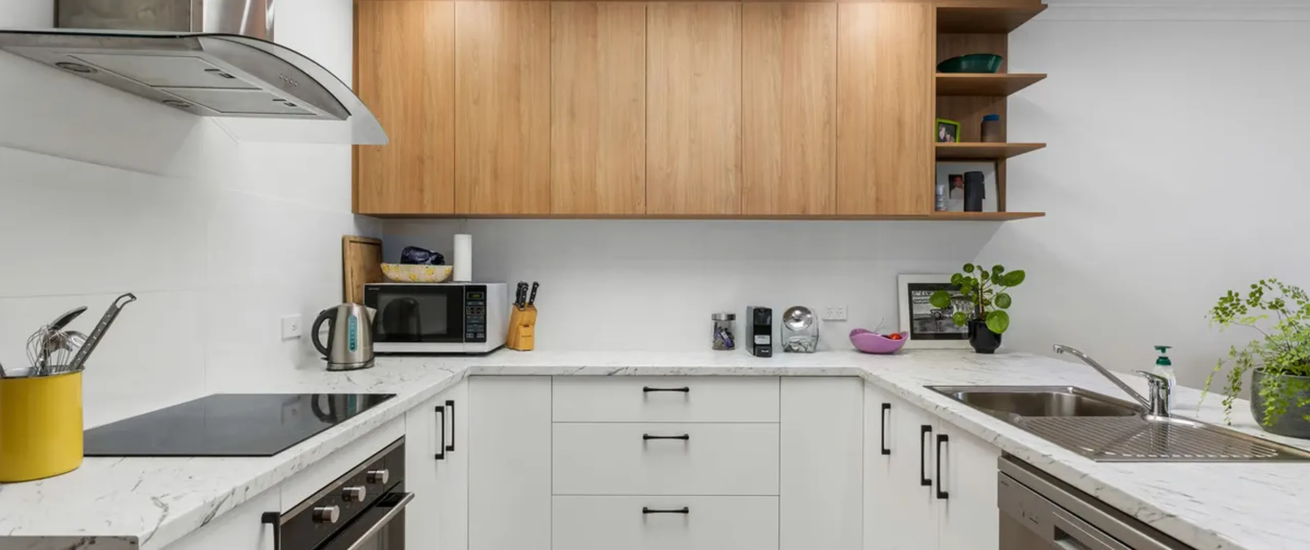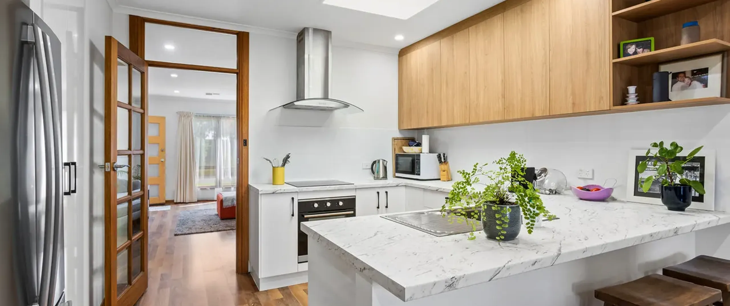 - Stylish, renovated kitchen with stainless steel appliances including a dishwasher, Euro oven and cooktop, ample cupboard space with soft close drawers and laminate bench top with breakfast bar