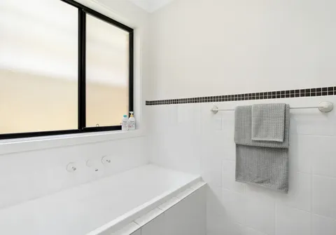 Thoughtfully constructed this home features a light filled, open plan living, dining and kitchen area, three bedrooms, two immaculate bathrooms and an impressive decked entertaining area with pitched roof that overlooks the lawn area.