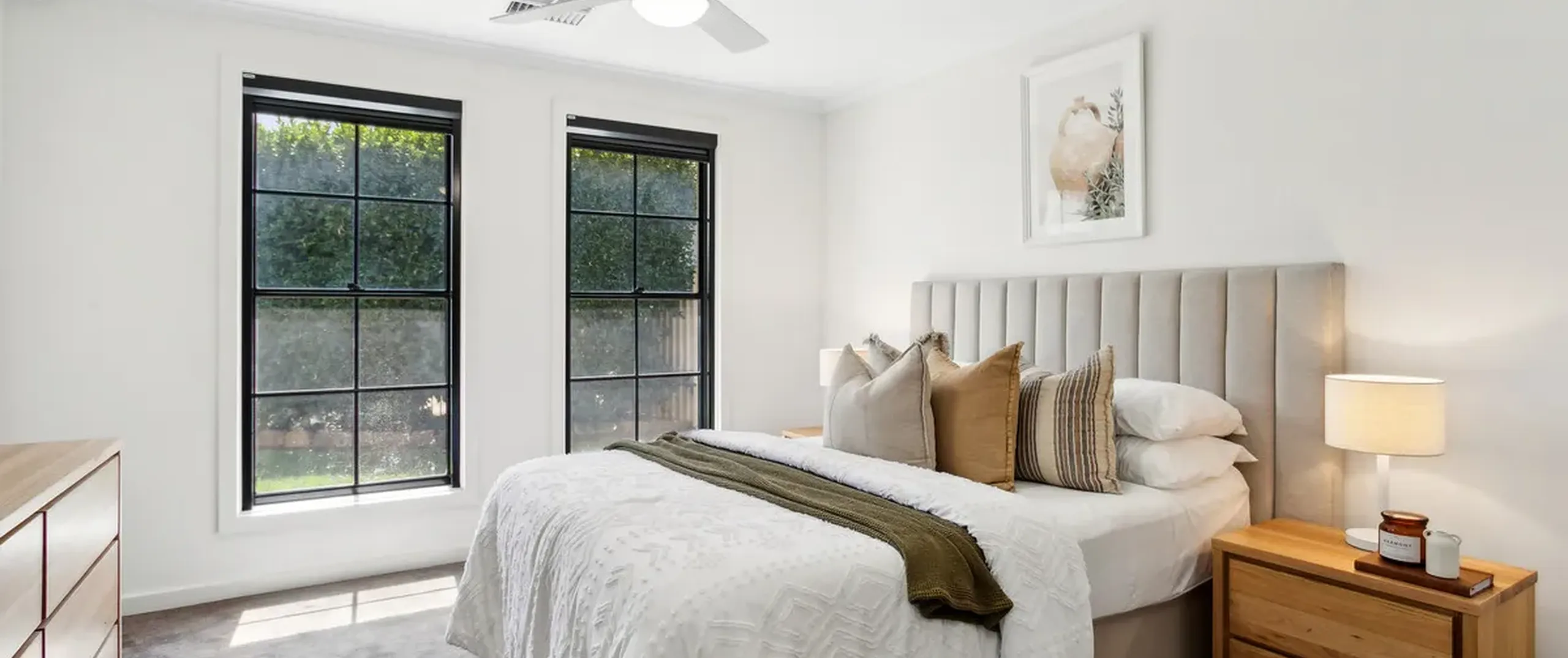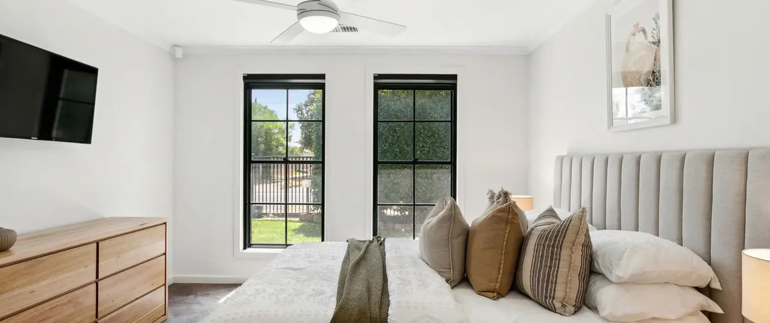 - Master bedroom with walk-in robe, ensuite and ceiling fan
