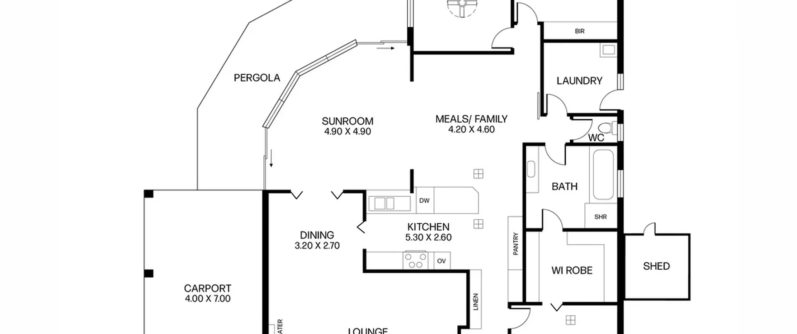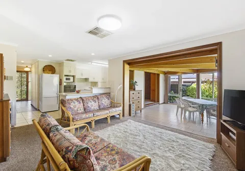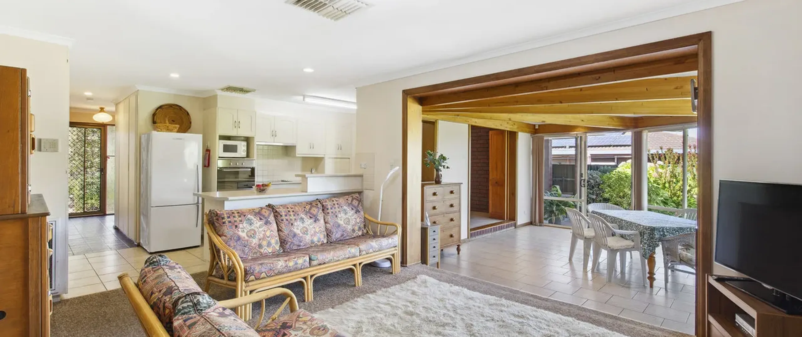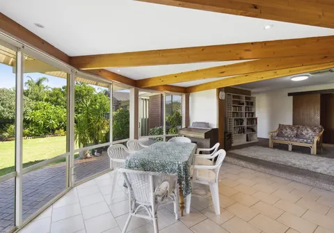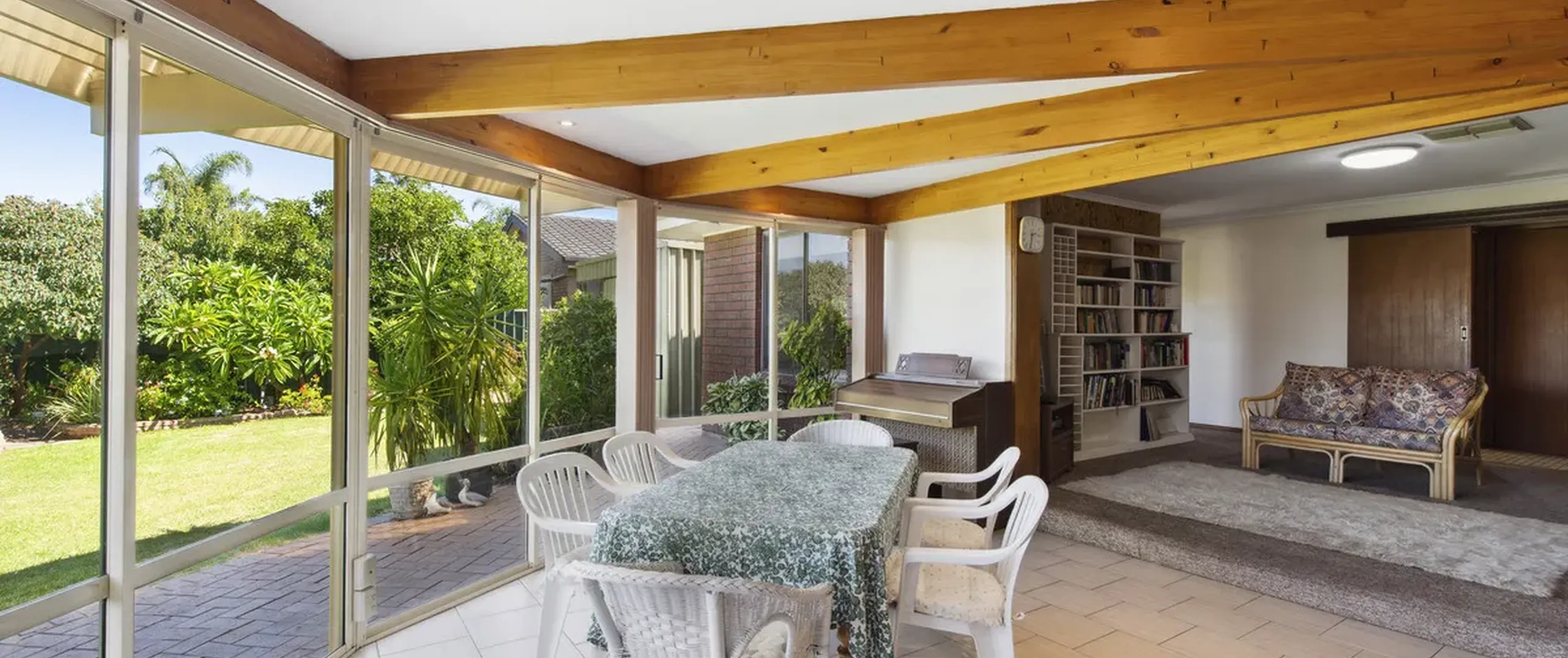Natural light streams through wall-to-wall glass into the delightfully spacious sunroom that perfectly accompanies the cosy family room and the open plan formal lounge and dining space. Delivering multiple living areas, three bedrooms, central bathroom for convenience and an undercover outdoor entertaining space that overlooks the landscaped rear yard, there is ample room to live and play.