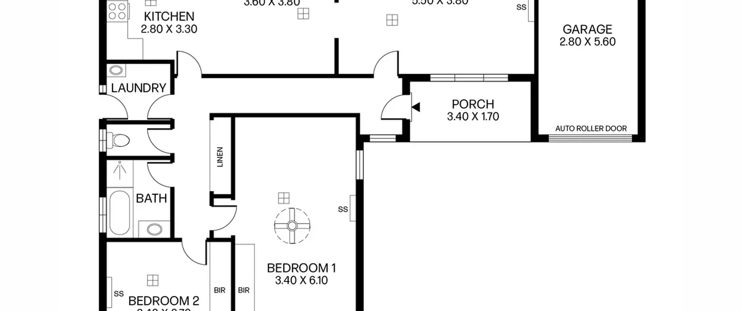 - Single garage with rear access through rear roller door