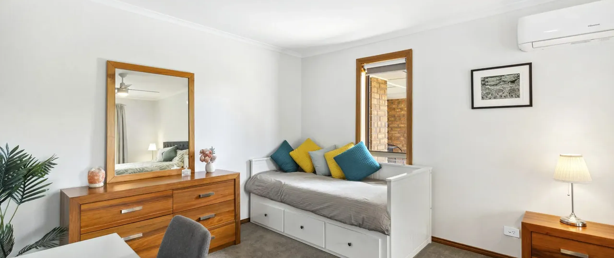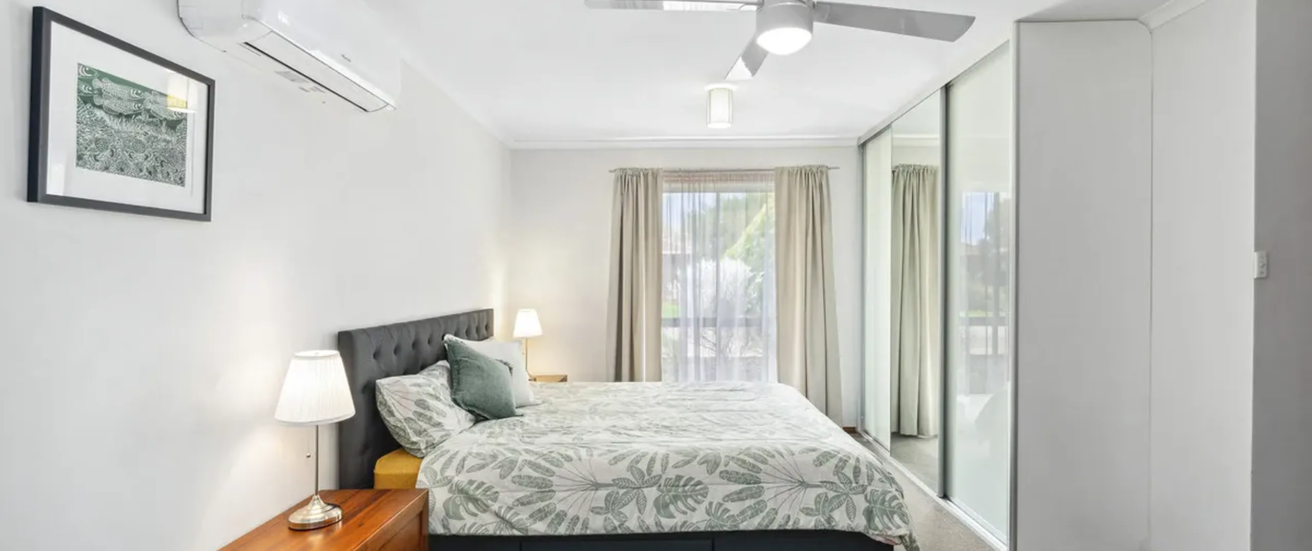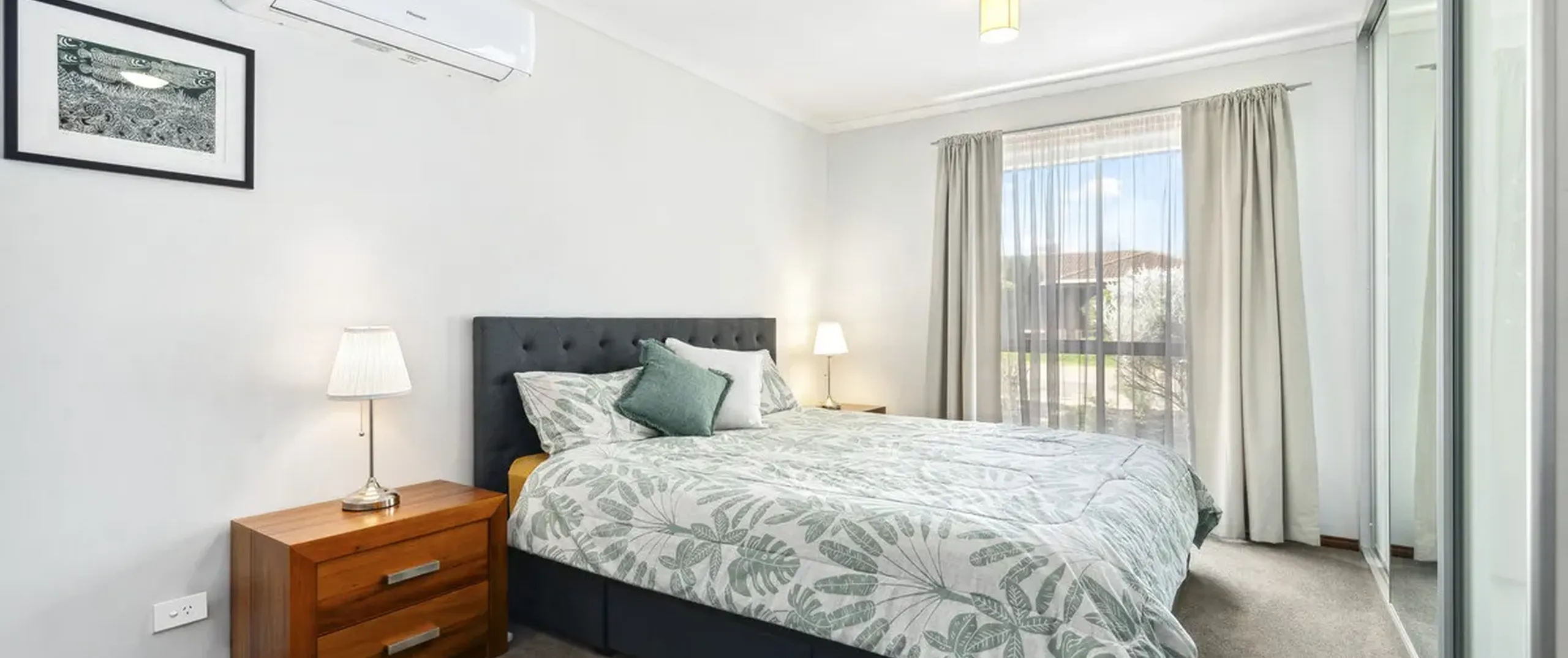- Bedroom two with built-in robe and split system air conditioning