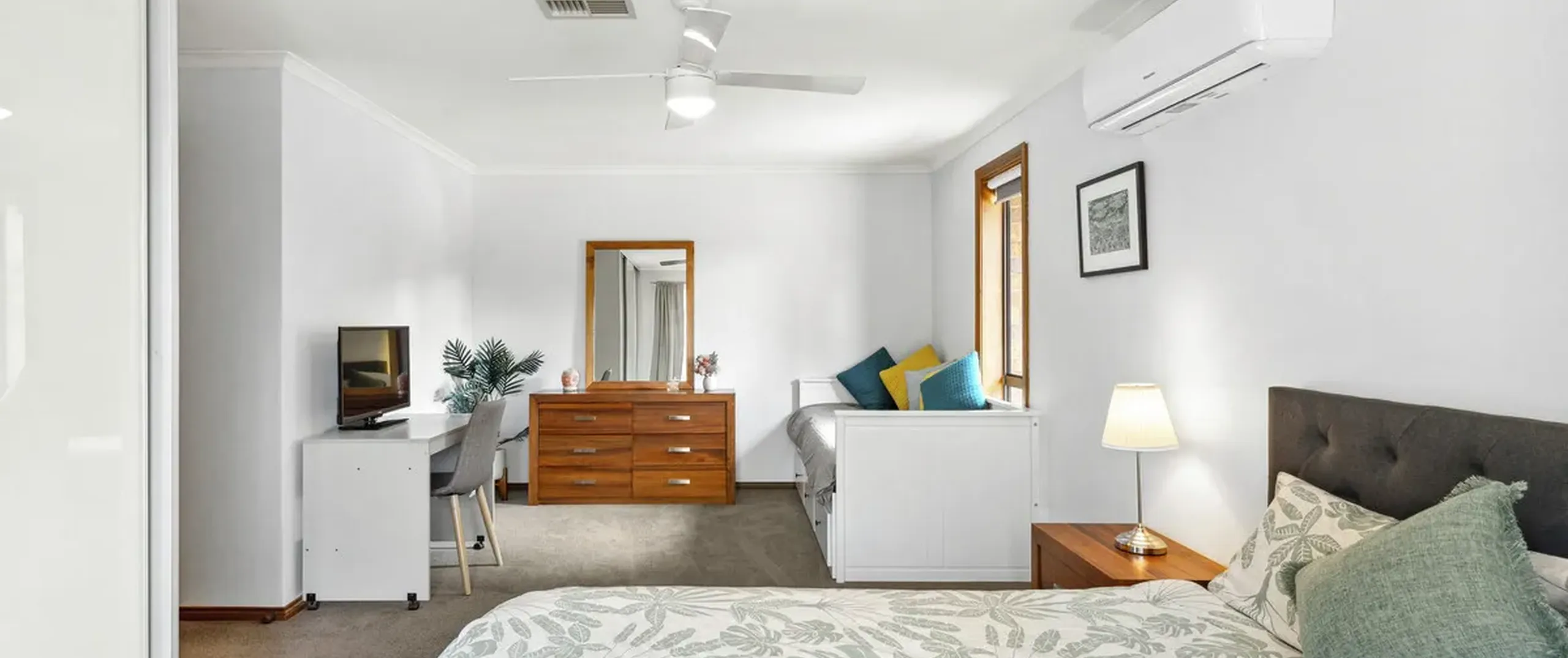 - Large master bedroom, complete with built-in robe, ceiling fan, split system air conditioning, and additional space for retreat or potential to divide into 2 rooms (subject to approval)