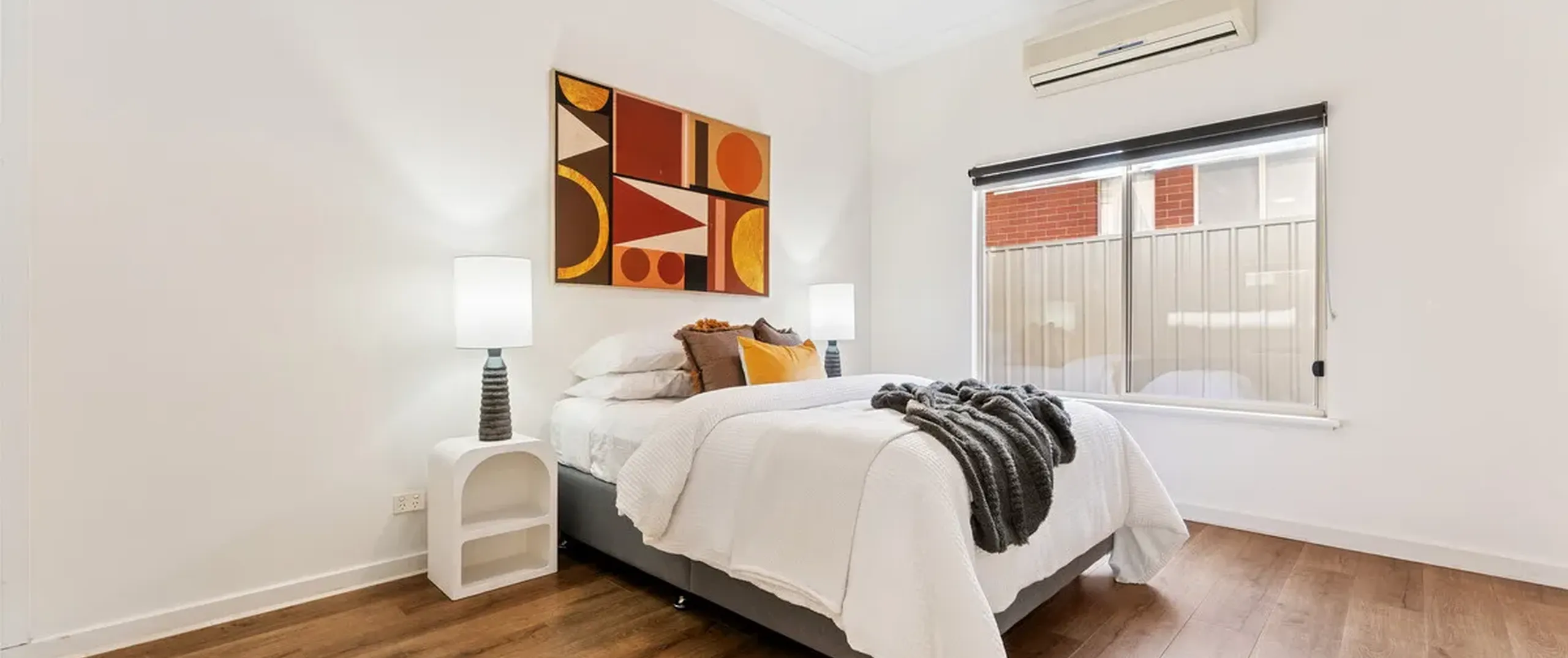 - Two additional bedrooms both with built-in robes and floating floorboards, bedroom 2 with split system air conditioning