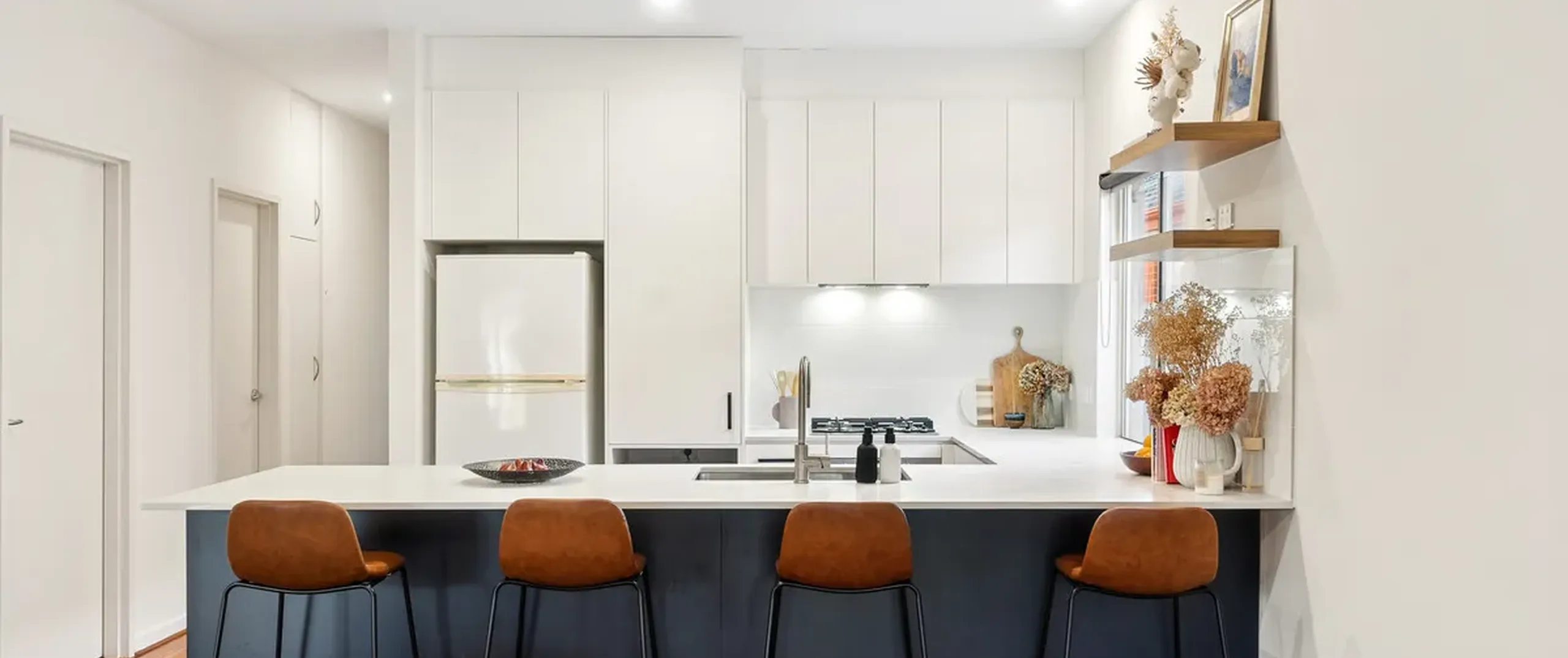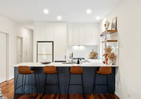 Designed with functionality and style in mind, the home boasts high ceilings and timber floating floors creating a sense of warmth, space and light throughout. At the heart of the home sits the premium Farquhar kitchen, featuring stainless steel appliances, gas cooking, filtered water, and ample storage, perfectly overlooking the generous living and dining spaces.