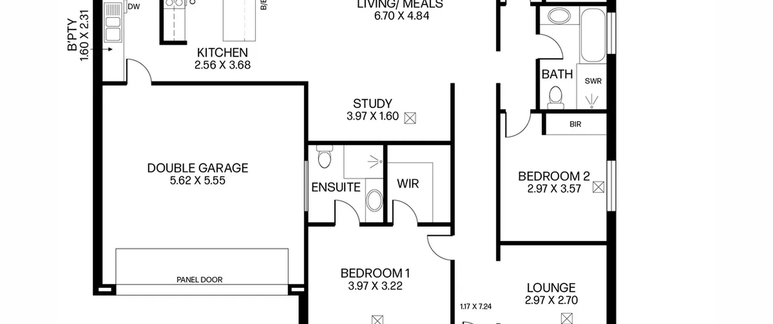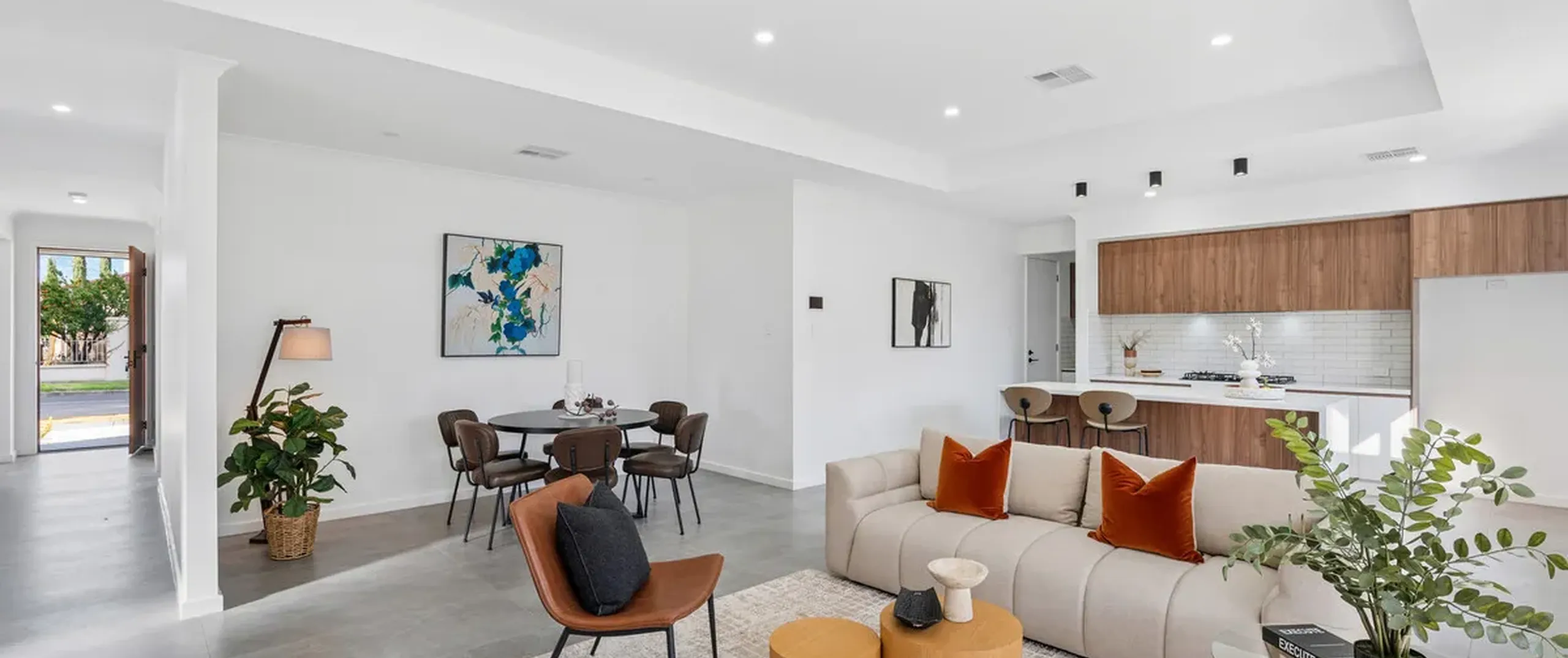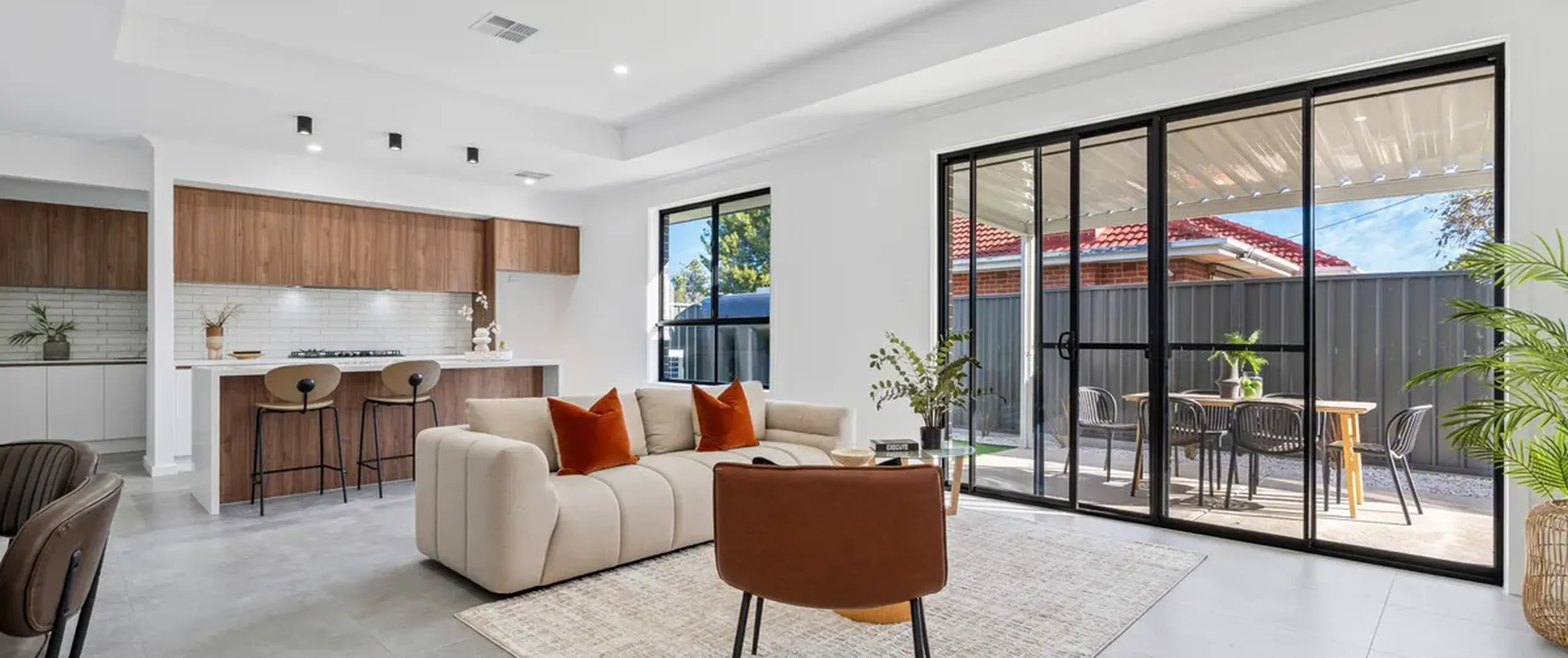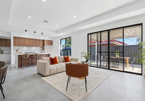 - Sunlit open-plan living and meals area, seamlessly connecting to the rear yard via sliding doors