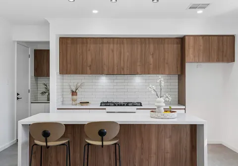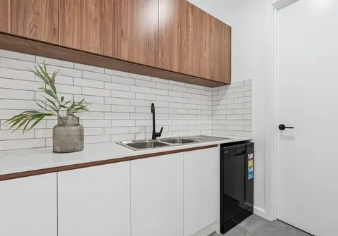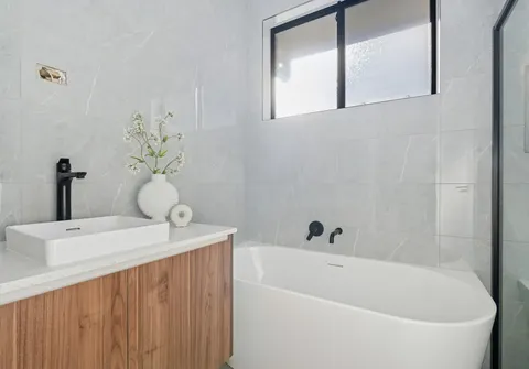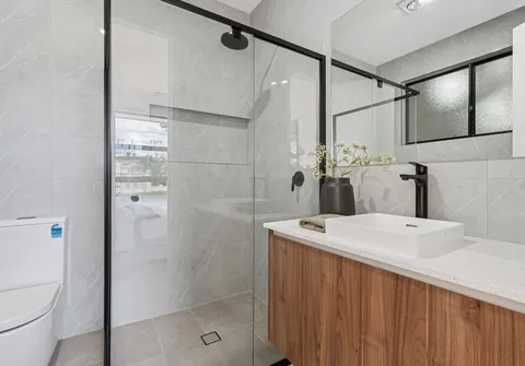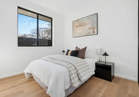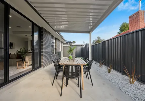 At the heart of the home, an open-plan design effortlessly integrates the living, dining and kitchen areas, all enhanced with sleek black fixtures and fittings. Expansive windows fill the space with natural light, complemented by stylish LED downlights throughout. Ducted air-conditioning provides comfort in every season, while sliding doors create a seamless connection to the low-maintenance rear yard - perfect for entertaining friends and family and enjoying the home’s inviting lifestyle.