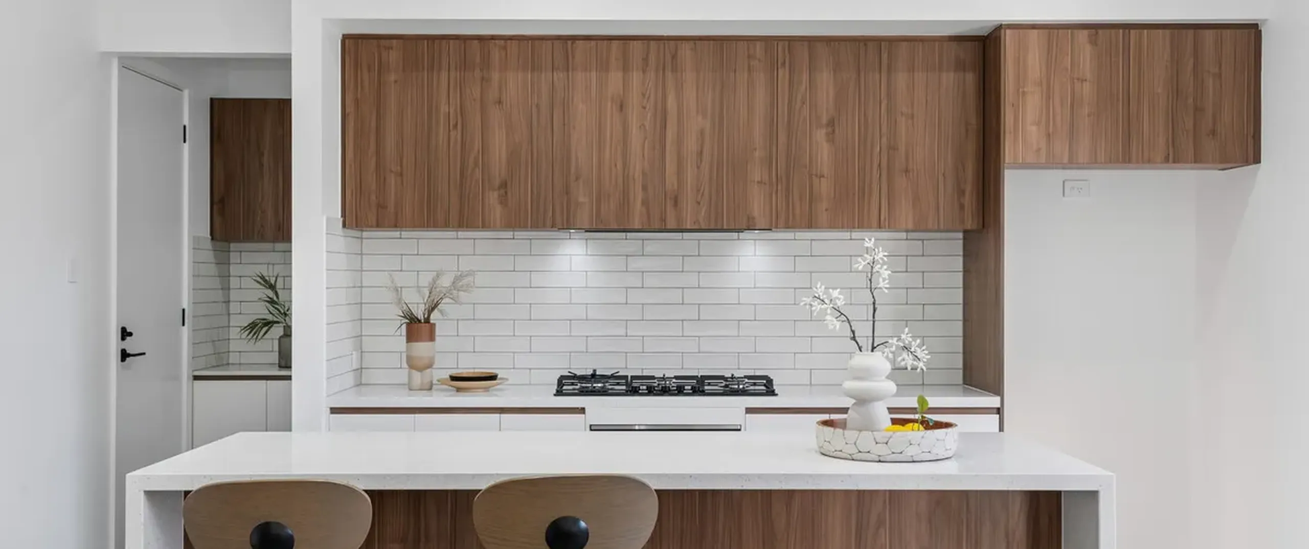 - Stylish kitchen with butler’s pantry, breakfast bar, stone benchtops, tiled splashback, gas cooktop, oven and abundant storage and bench space