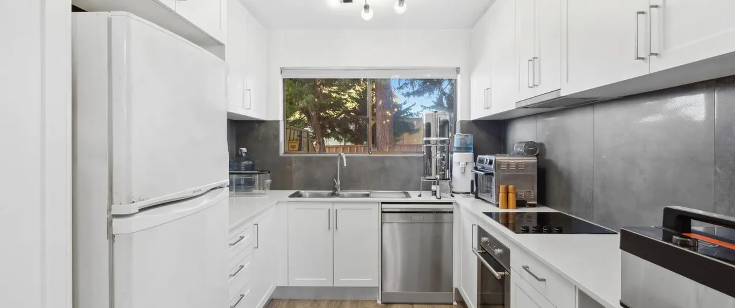 - Modern, stylish kitchen with induction cooktop, dishwasher, double inset sink and stone bench tops