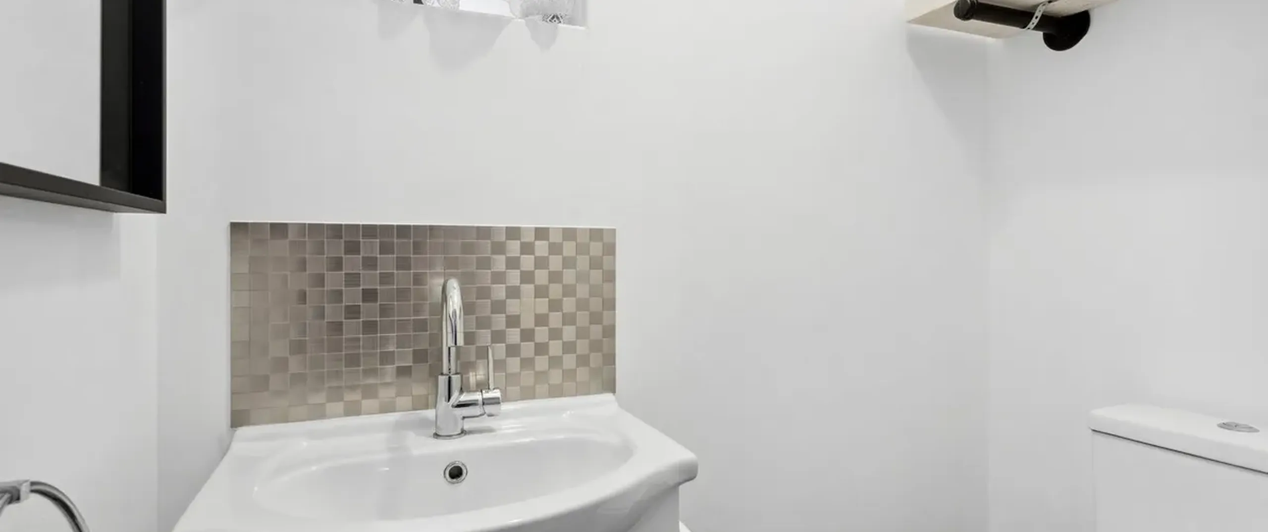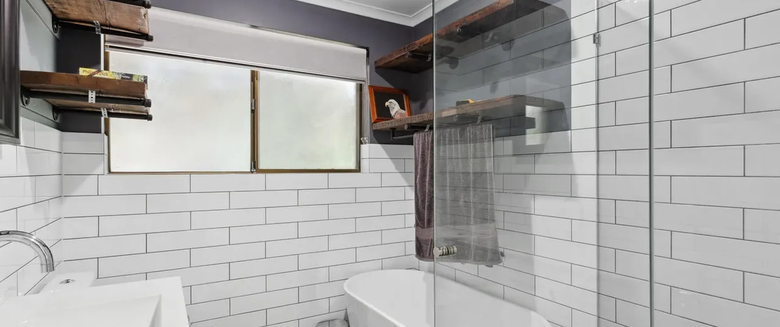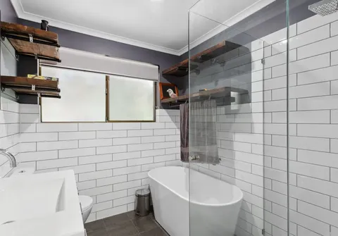 - Immaculate main bathroom with free-standing bath, on-trend subway tiles and shelving