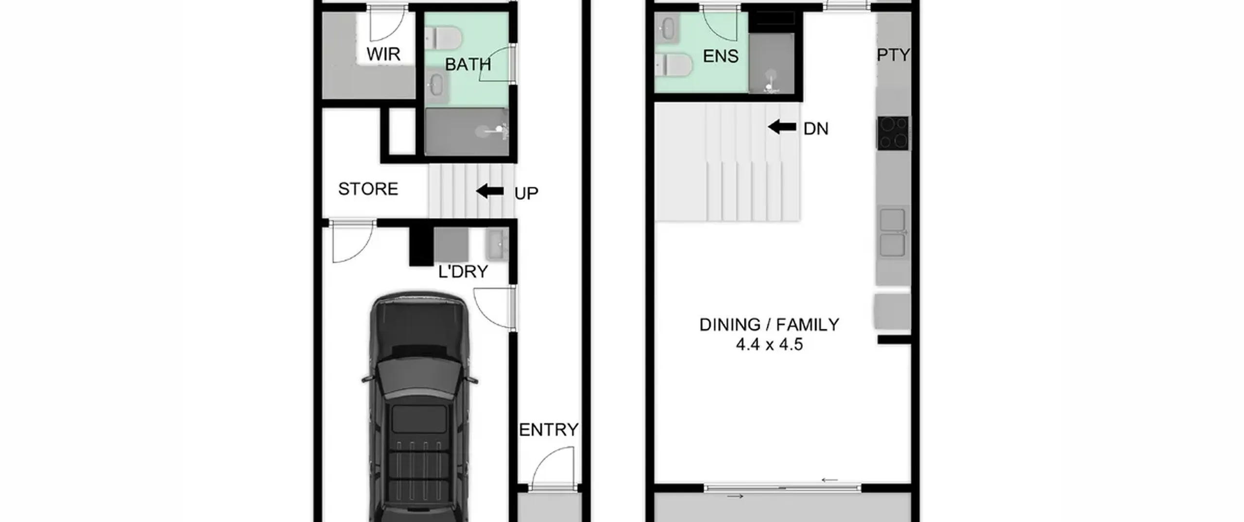 - Single garage with automatic roller door, internal laundry and direct internal access