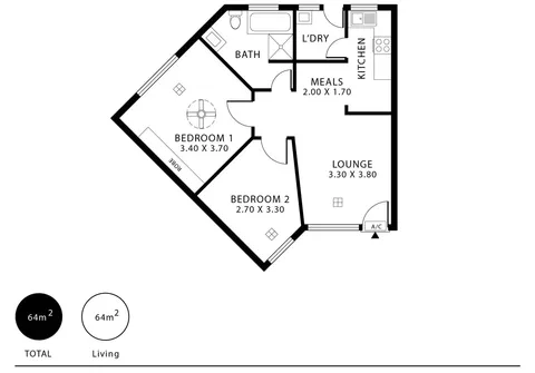 - Two bedrooms, bedroom 1 with built in robe and ceiling fan