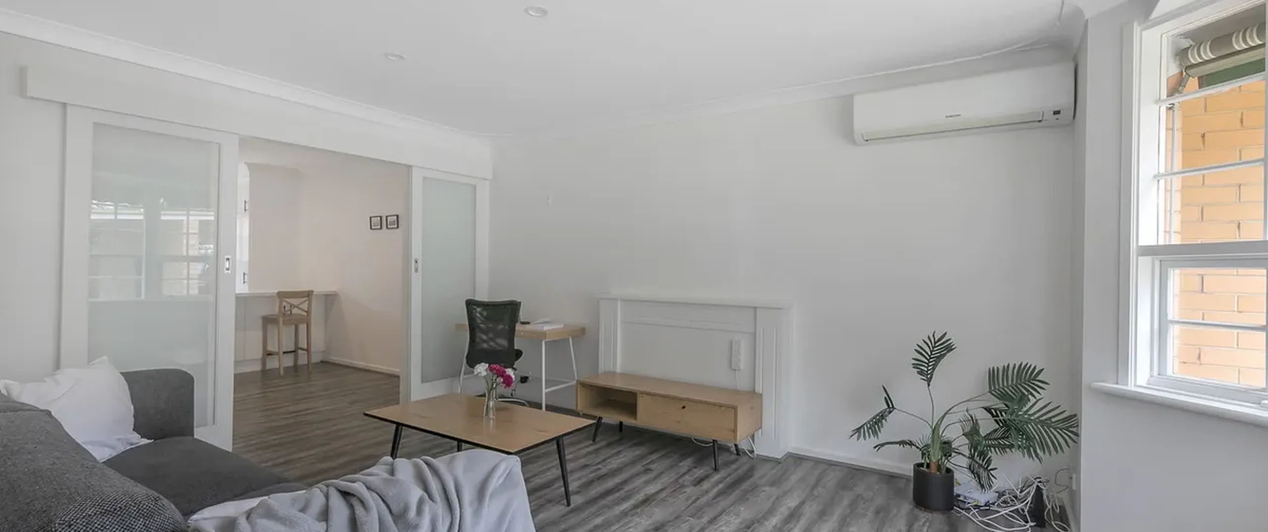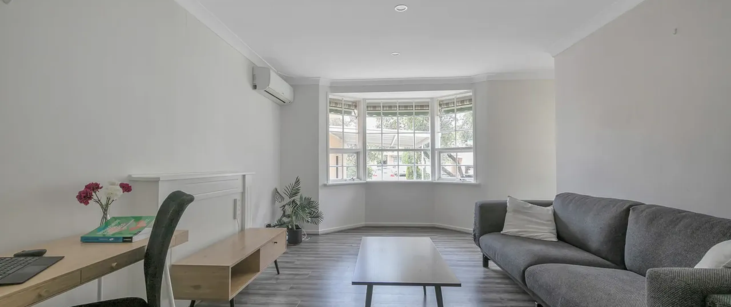 - Living room upon entry filled with natural light from the stunning bay window and complete with split system air conditioner