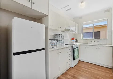The layout is not only functional but also comfortable and inviting, featuring two bedrooms and one bathroom. Soft, natural light floods the kitchen and living area, complemented by modern neutral flooring.