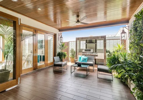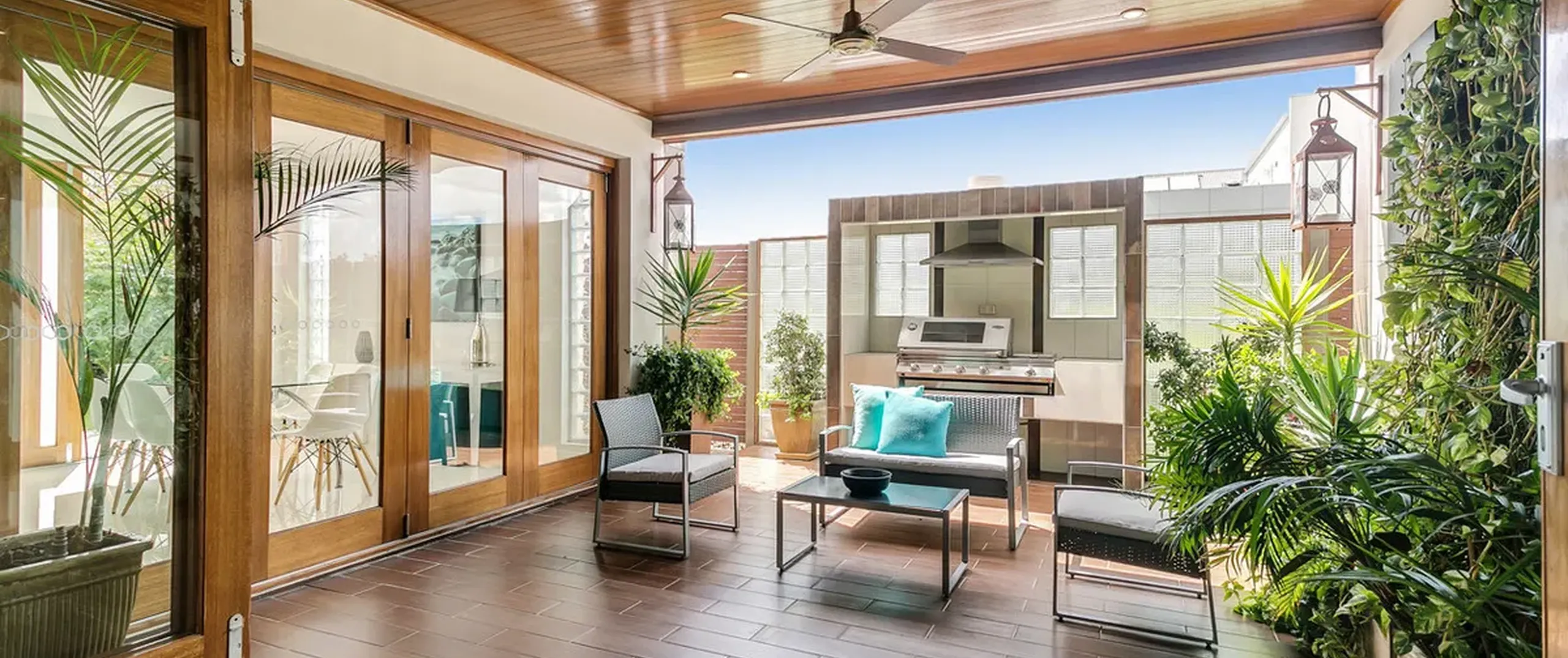 - Stunning private alfresco featuring beautiful timber ceiling with fan, planter box gardens and built-in BBQ