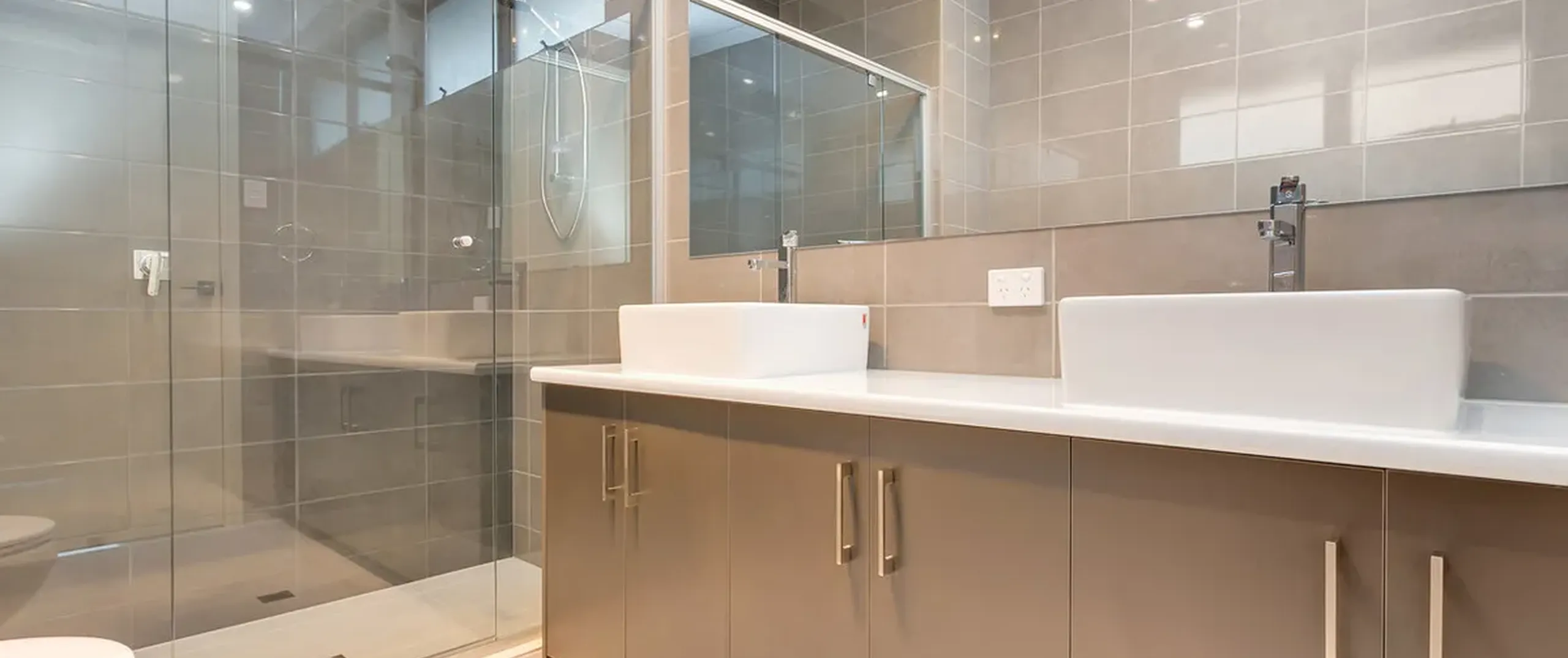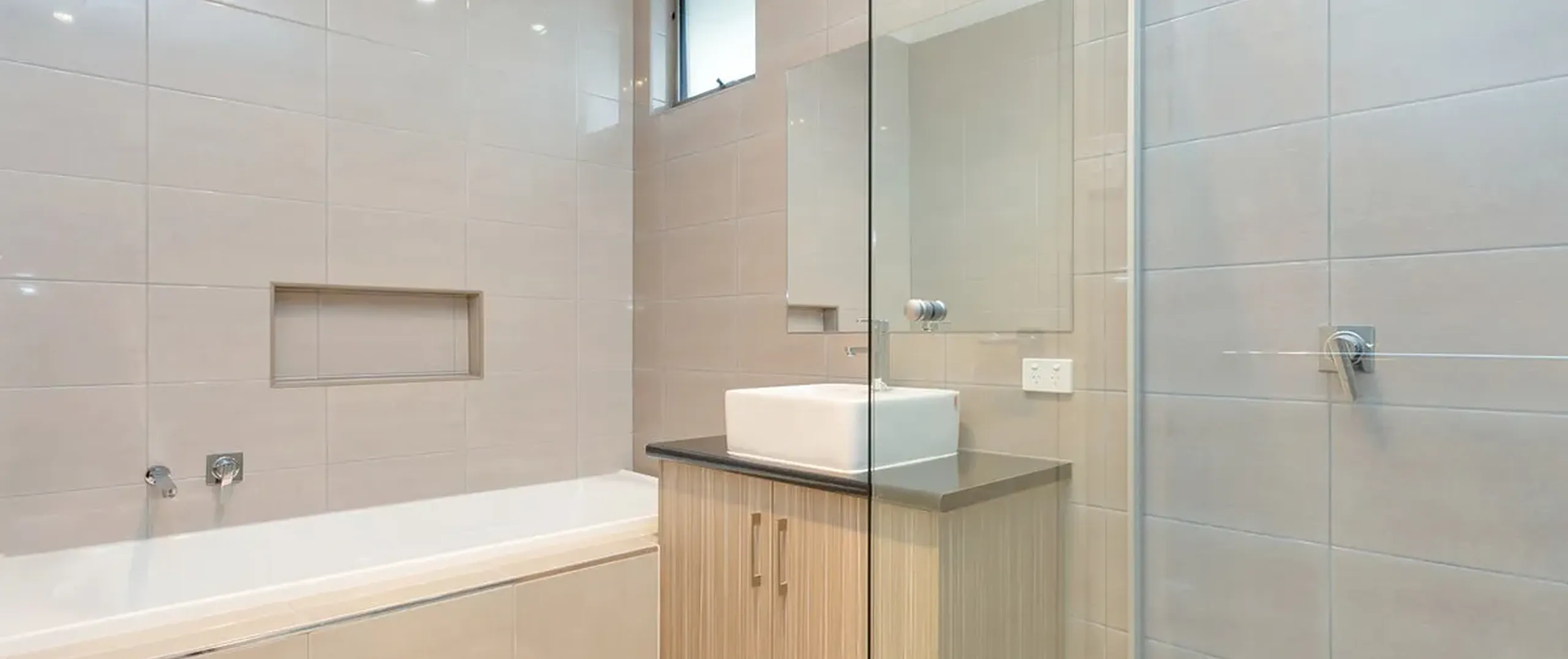 - Main bathroom with separate bath and shower