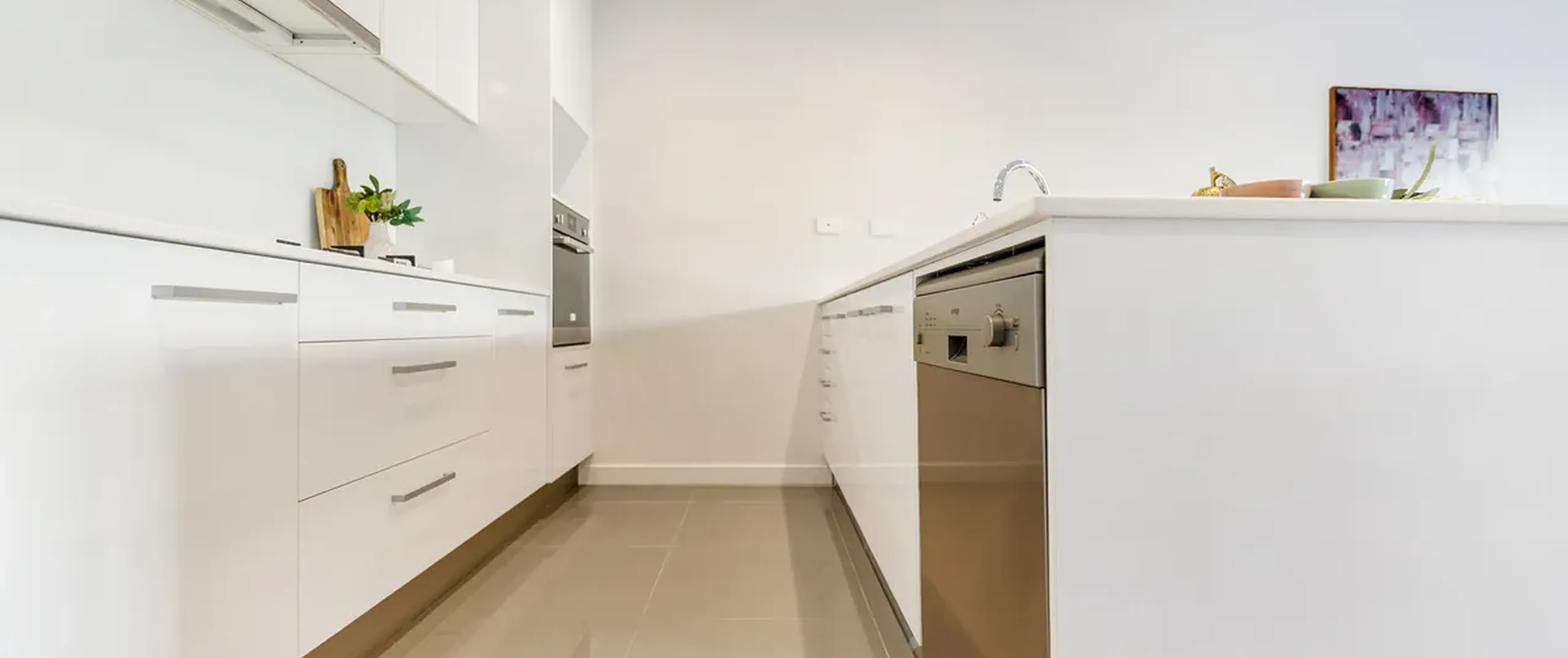 - Modern, stylish kitchen with stainless steel appliances, dishwasher, gas cooktop, island bench with stone bench top and walk-in pantry