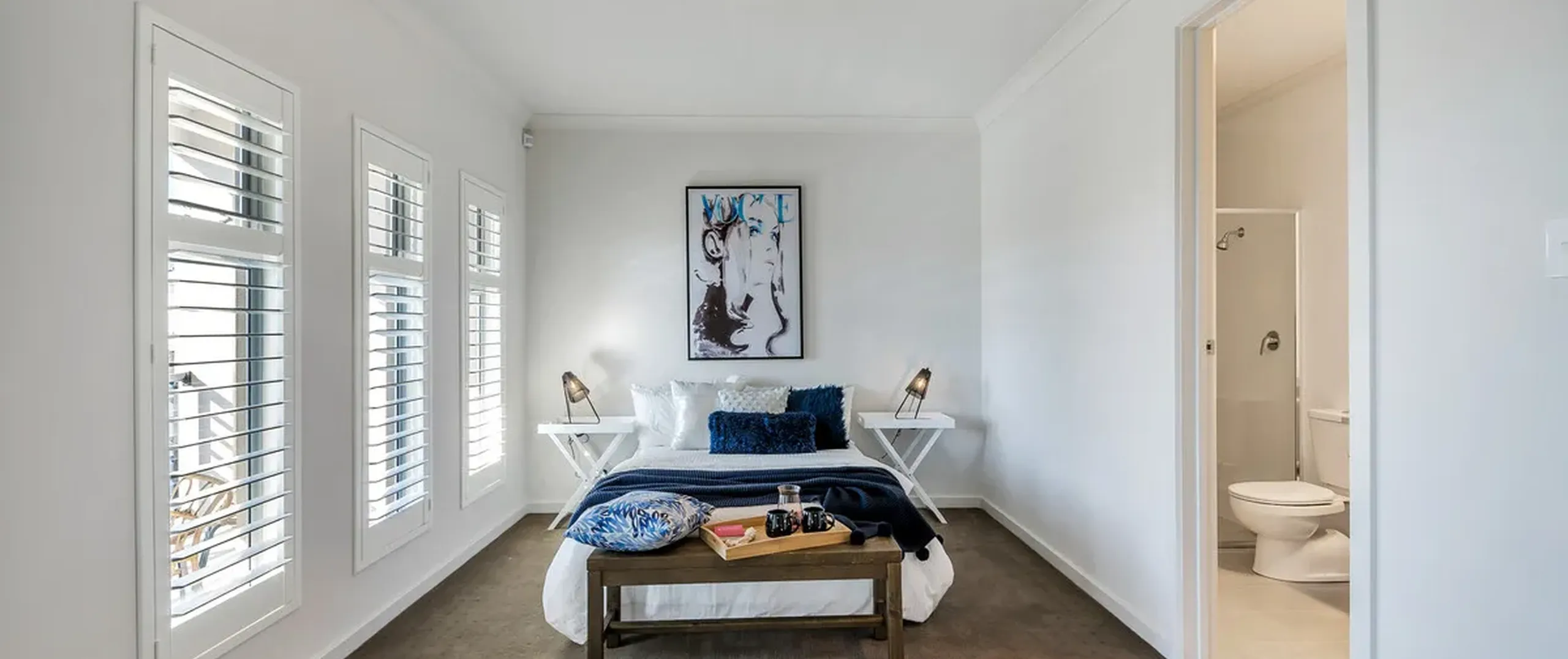 - Double sized master bedroom with built-in robe, ensuite with full height tiling and access to large paved balcony, ideal for morning coffee or afternoon drinks