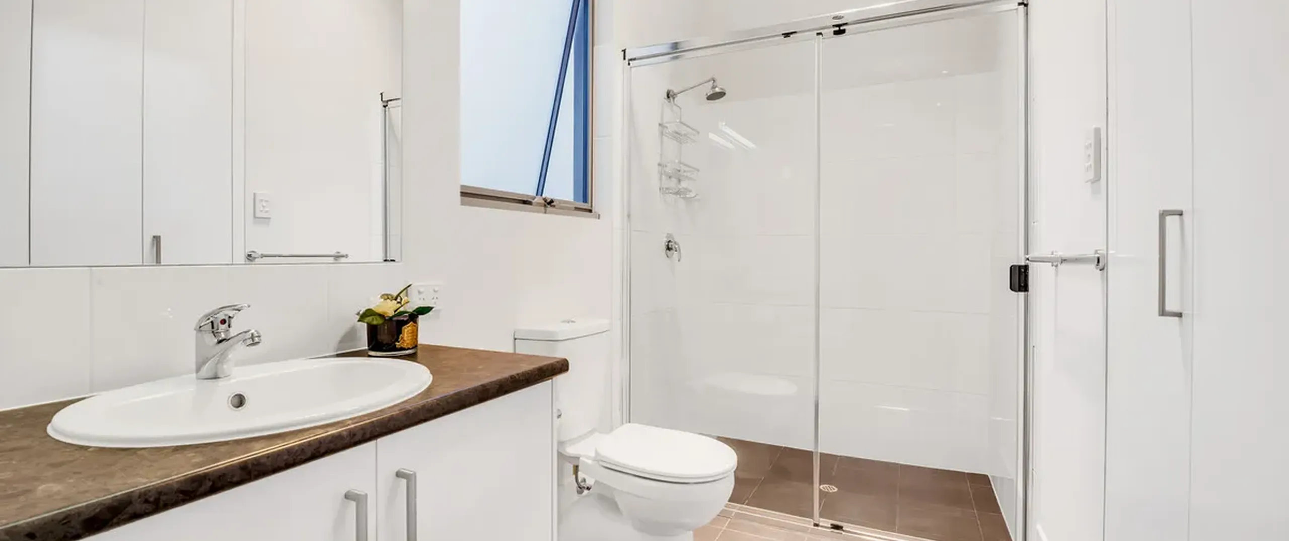 - Immaculate bathroom with hanging mirror light, 4x IXL heater lights, 2x exhaust fans, and incorporating European laundry