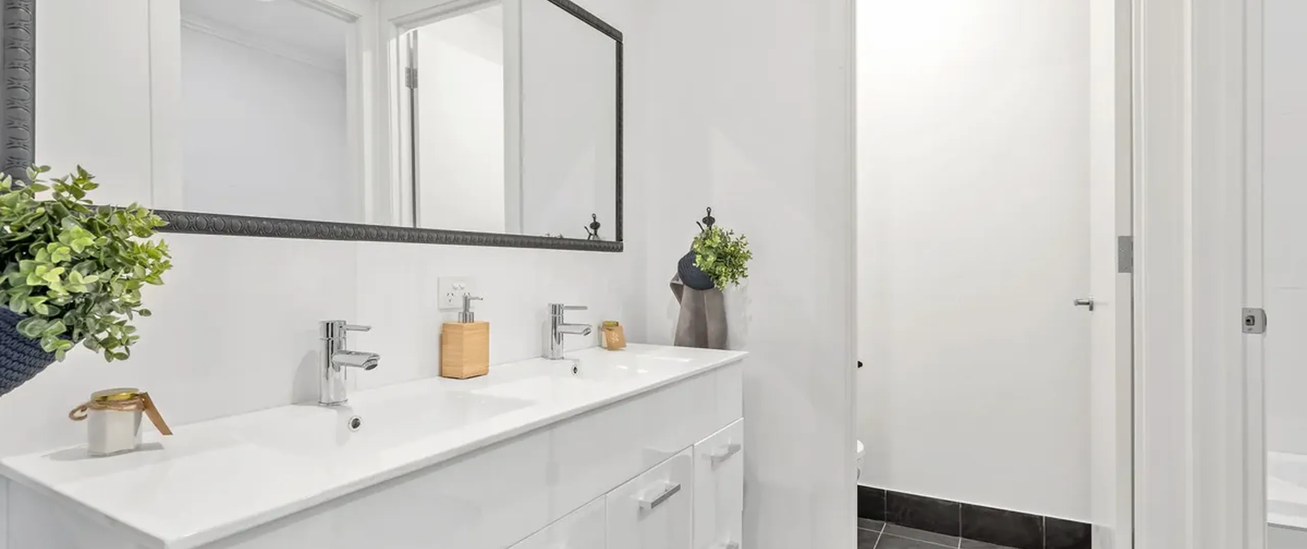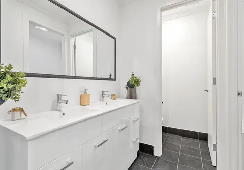- Three-way main bathroom with dual vanities