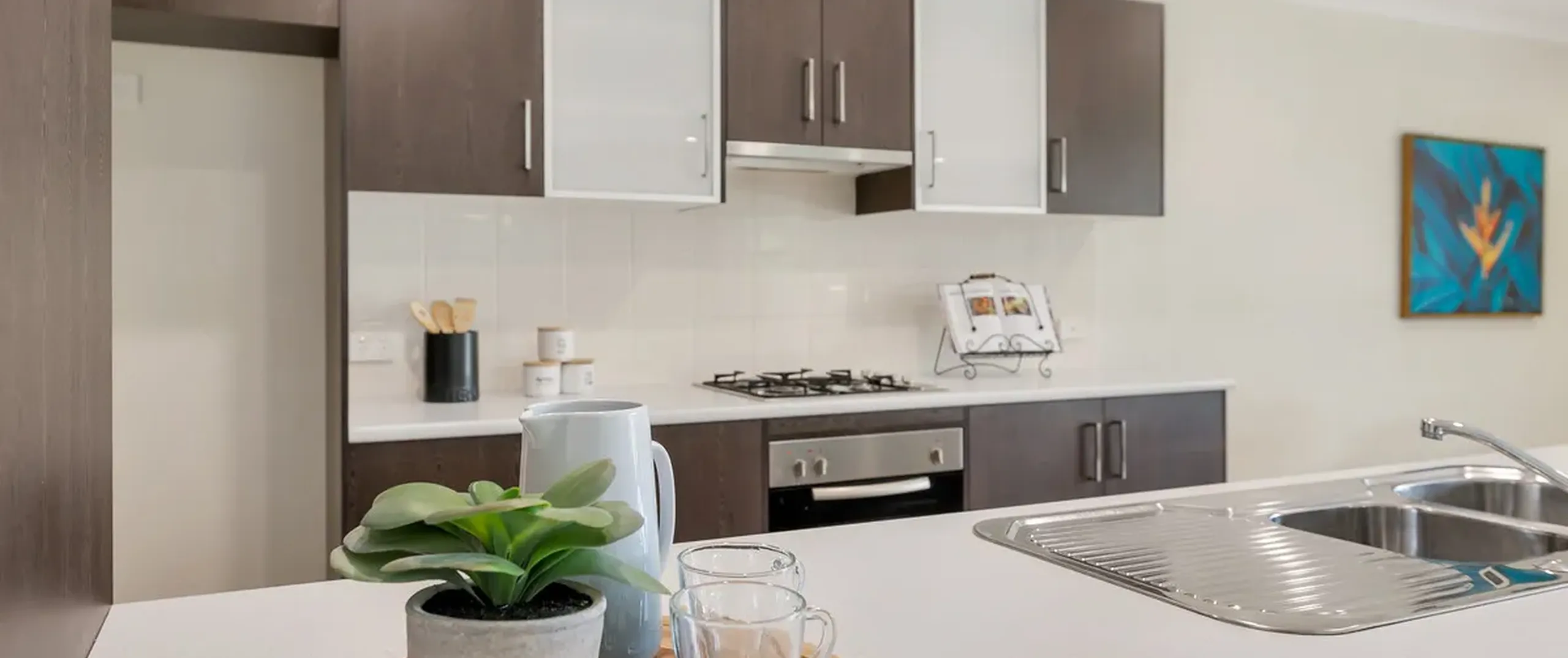 - Modern kitchen with ample cupboard space, stainless steel appliances and gas cooking