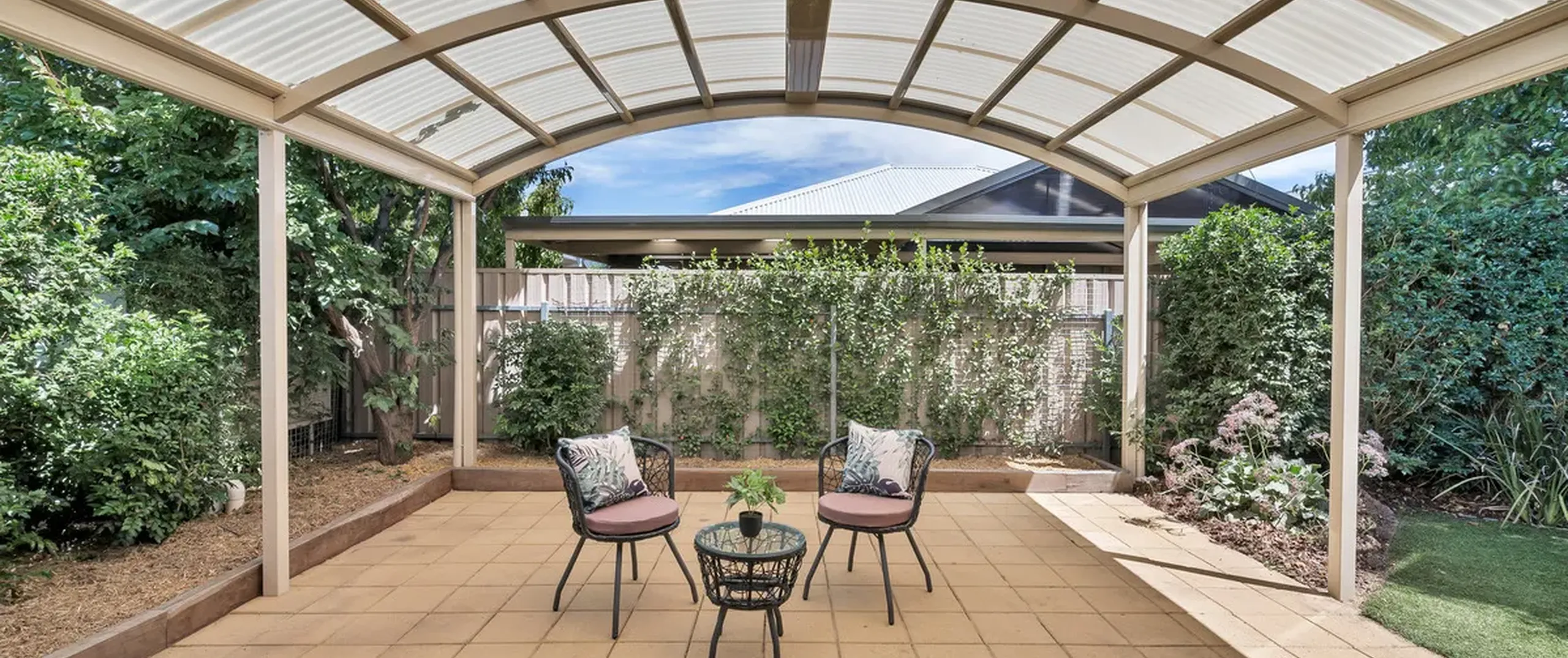 - Large pergola entertaining area