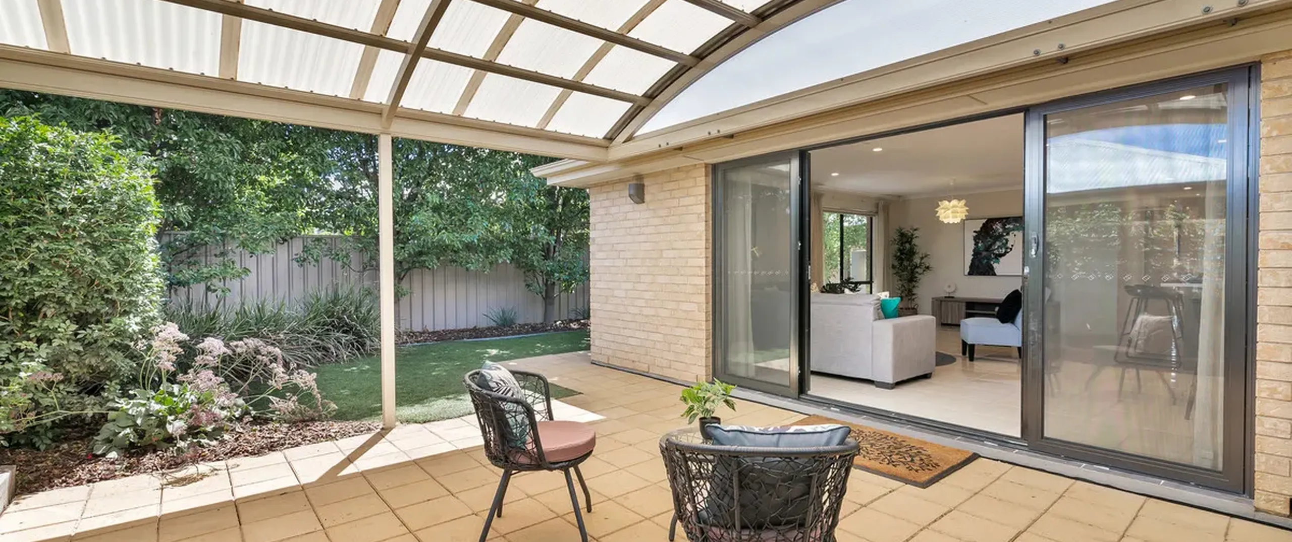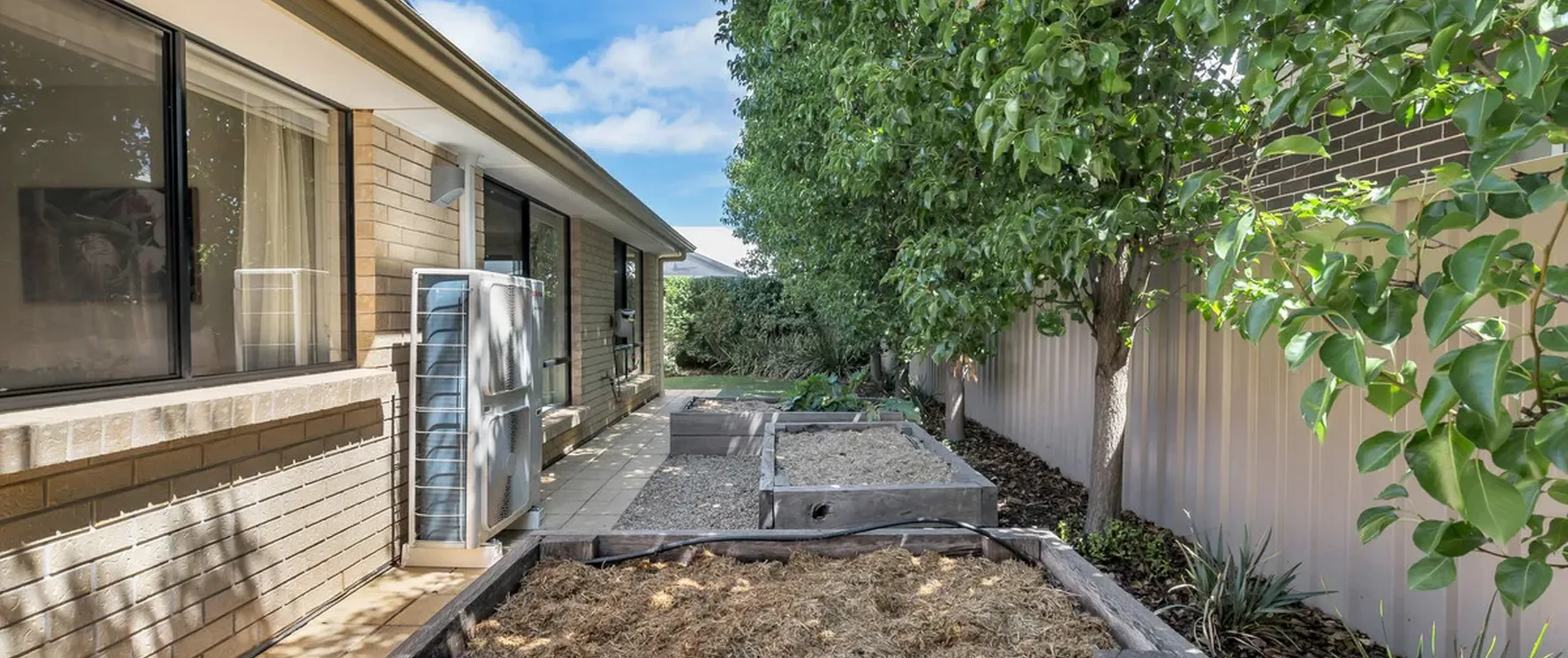 - Fully fenced yard with lush established garden and rain water tank