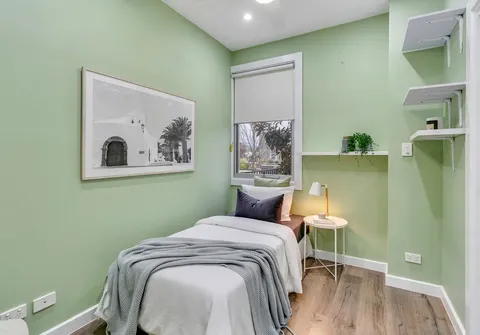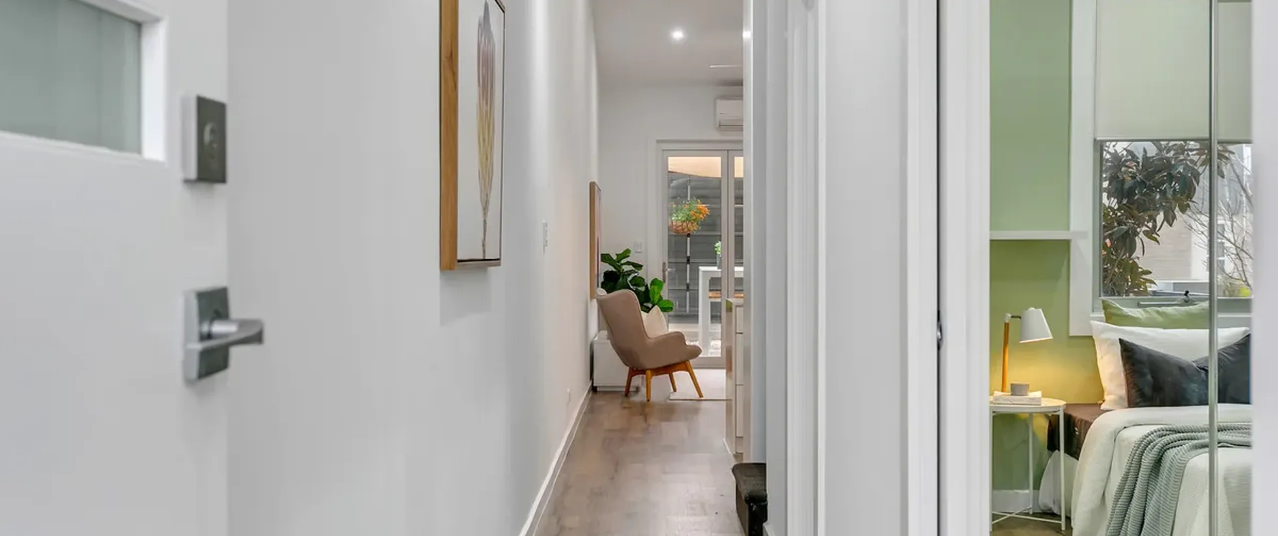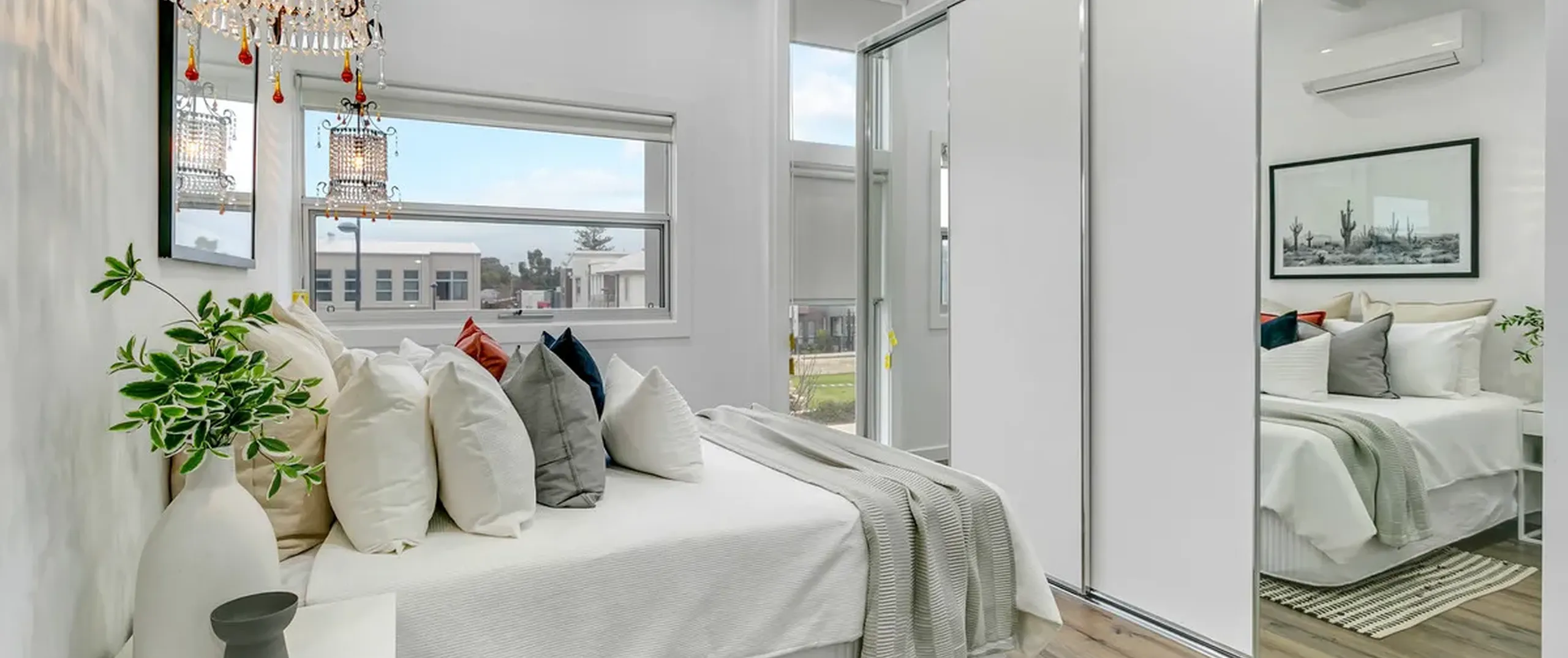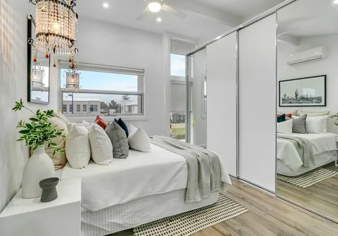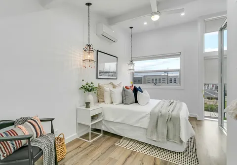 - Bedroom 1 on private upper level with split system air conditioner, built-in robe and ensuite