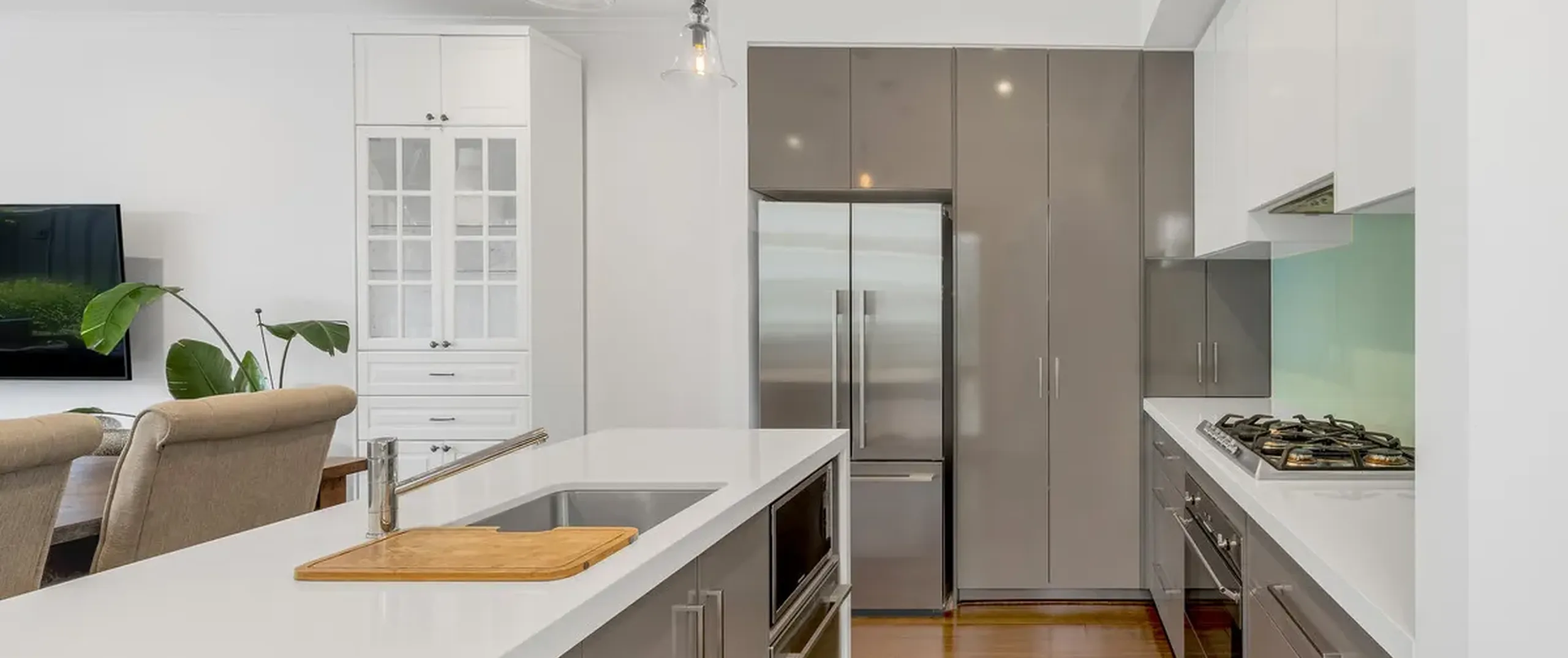 - Modern kitchen with stainless steel appliances, gas cooking and dishwasher