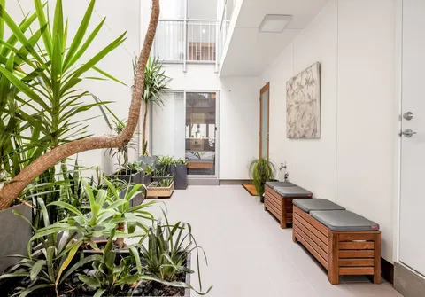 The clever design of this home gives you plenty of light and fresh air from the ground floor courtyard which is a full height light well.