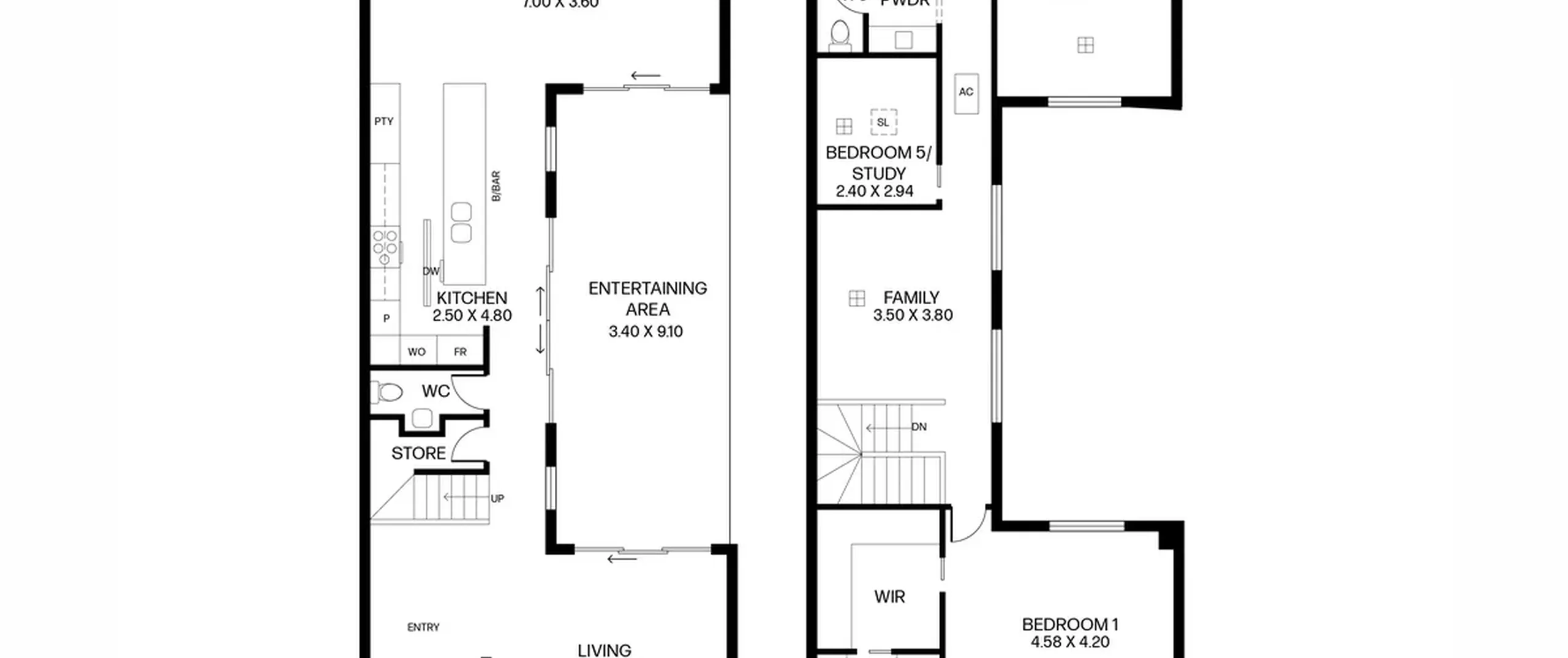 - 2.4m high doors and high ceilings to both levels