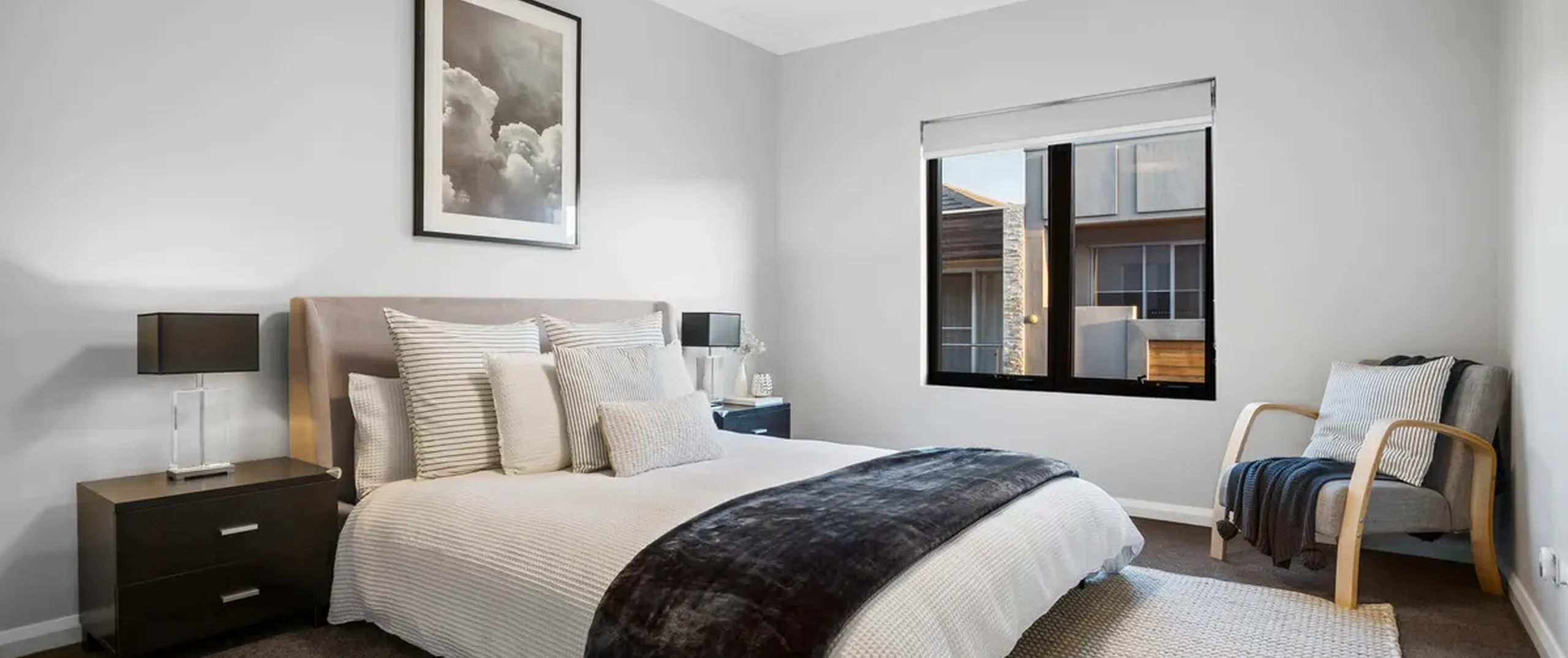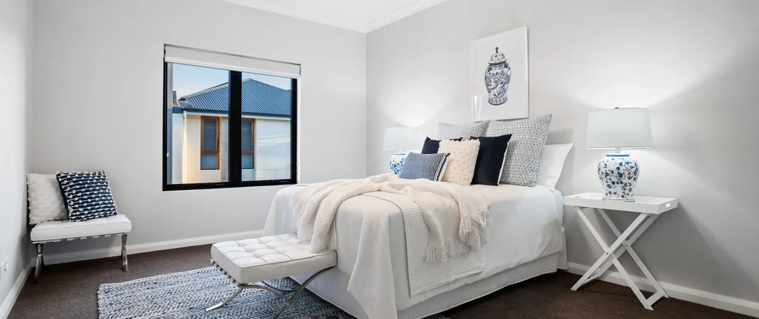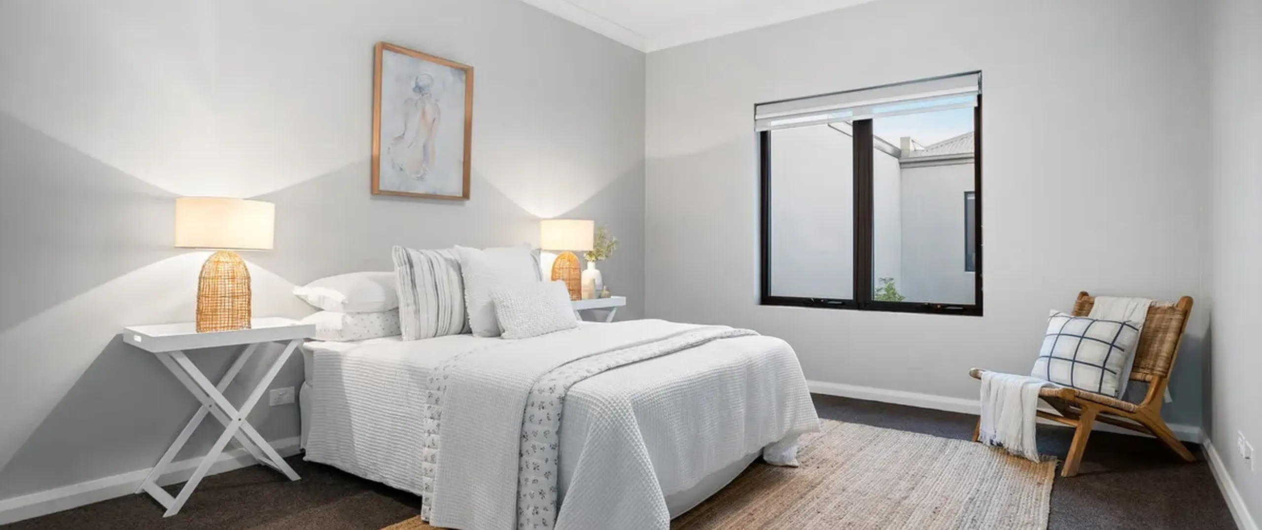 - Spacious master bedroom with beautiful floor to ceiling sheer curtains, feature pendants, large walk-in robe, ensuite with His and Her basins and access to the private balcony