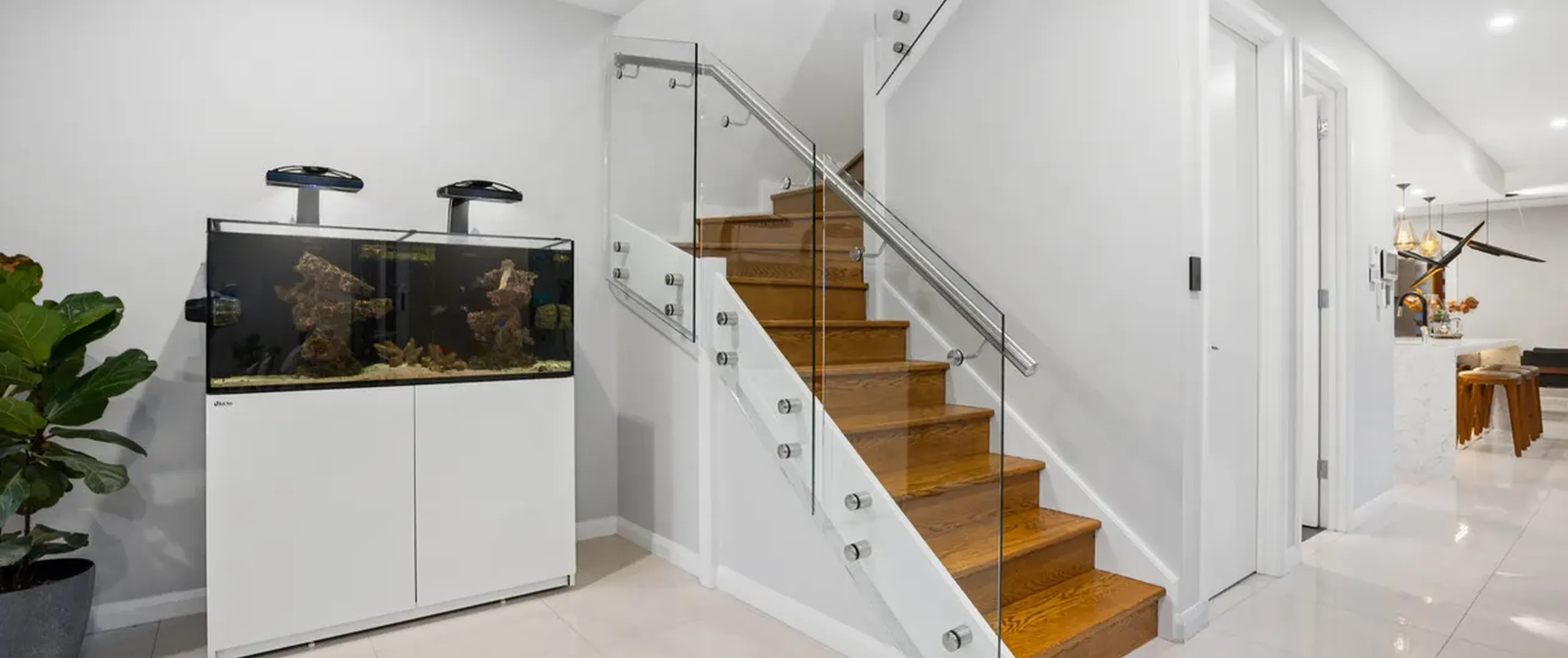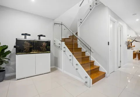 - Stunning timber staircase with frameless glass balustrades