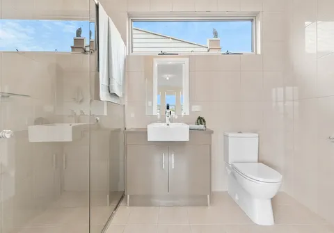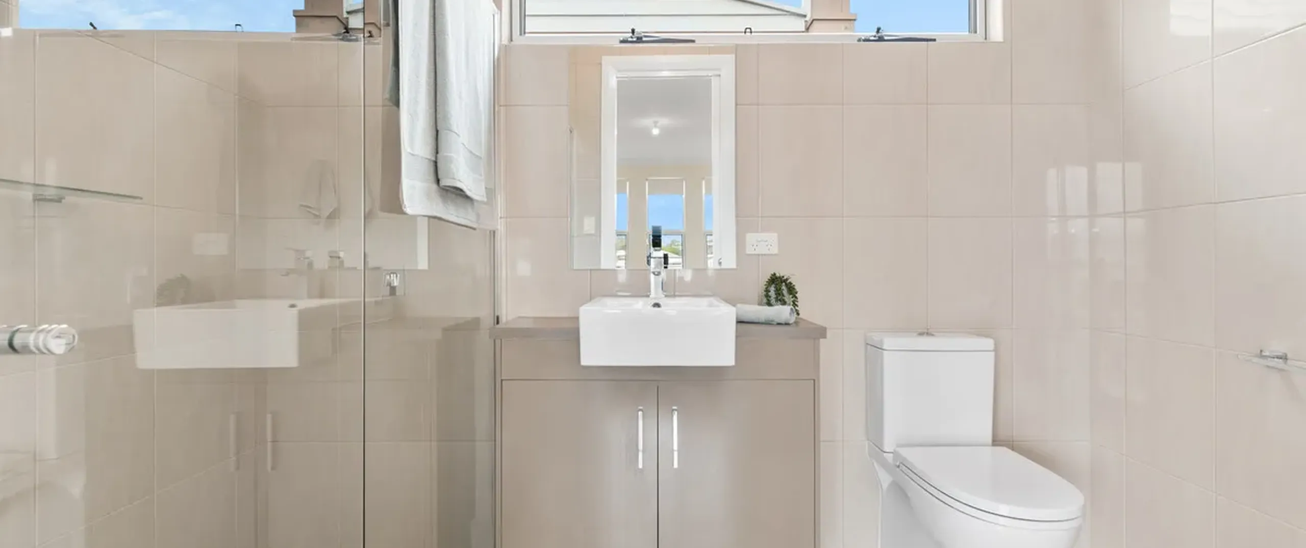 Neutral colour ways flood throughout both levels with a host of modern finishes on display. The upper-level houses three bedrooms all complete with ensuites and access to the front and rear balconies. A light-filled lounge room completes the level with access to one of the balconies where you can relax as you take in the views with a book in hand.